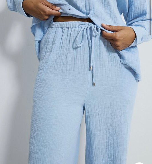 EX-George Light Blue Double Cloth Wide Leg Trousers