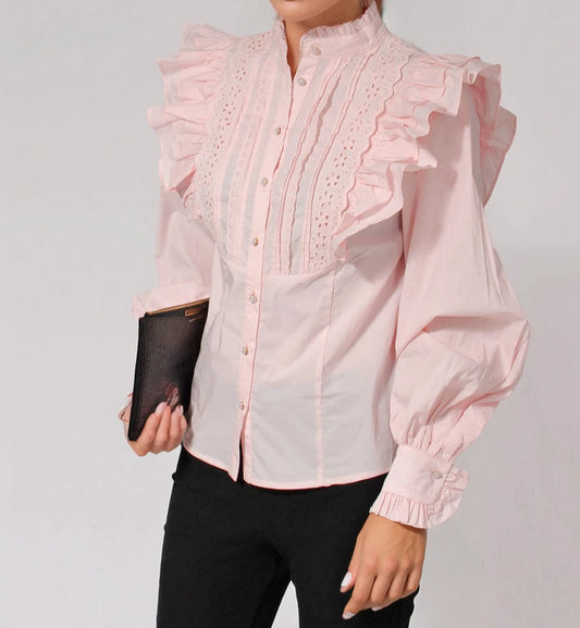 EX-RI Frill High Neck Pink Shirt