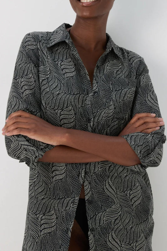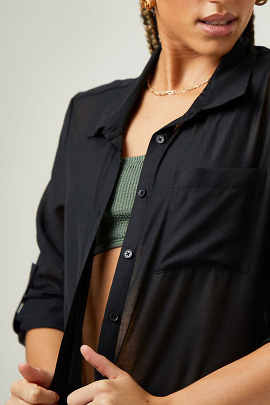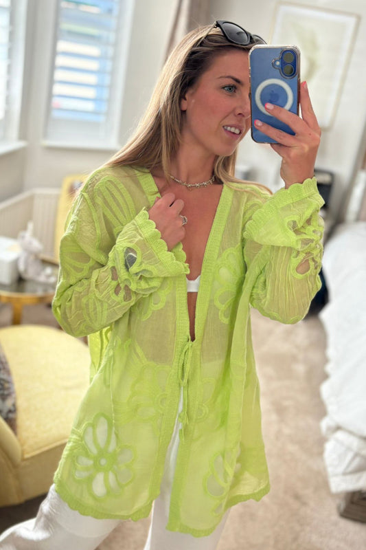 Sheer Embroidered Tie-Front Cover-Up in Green