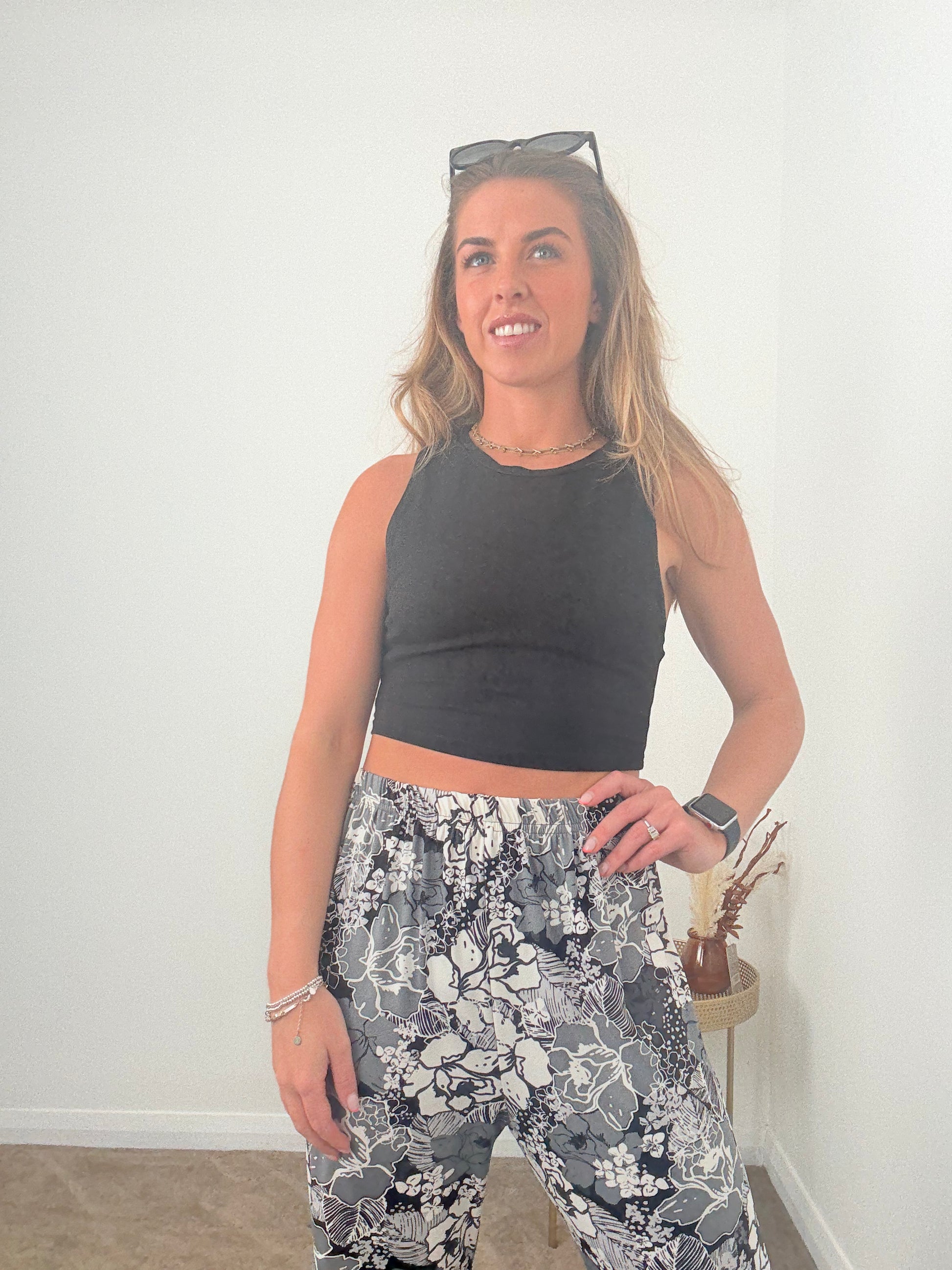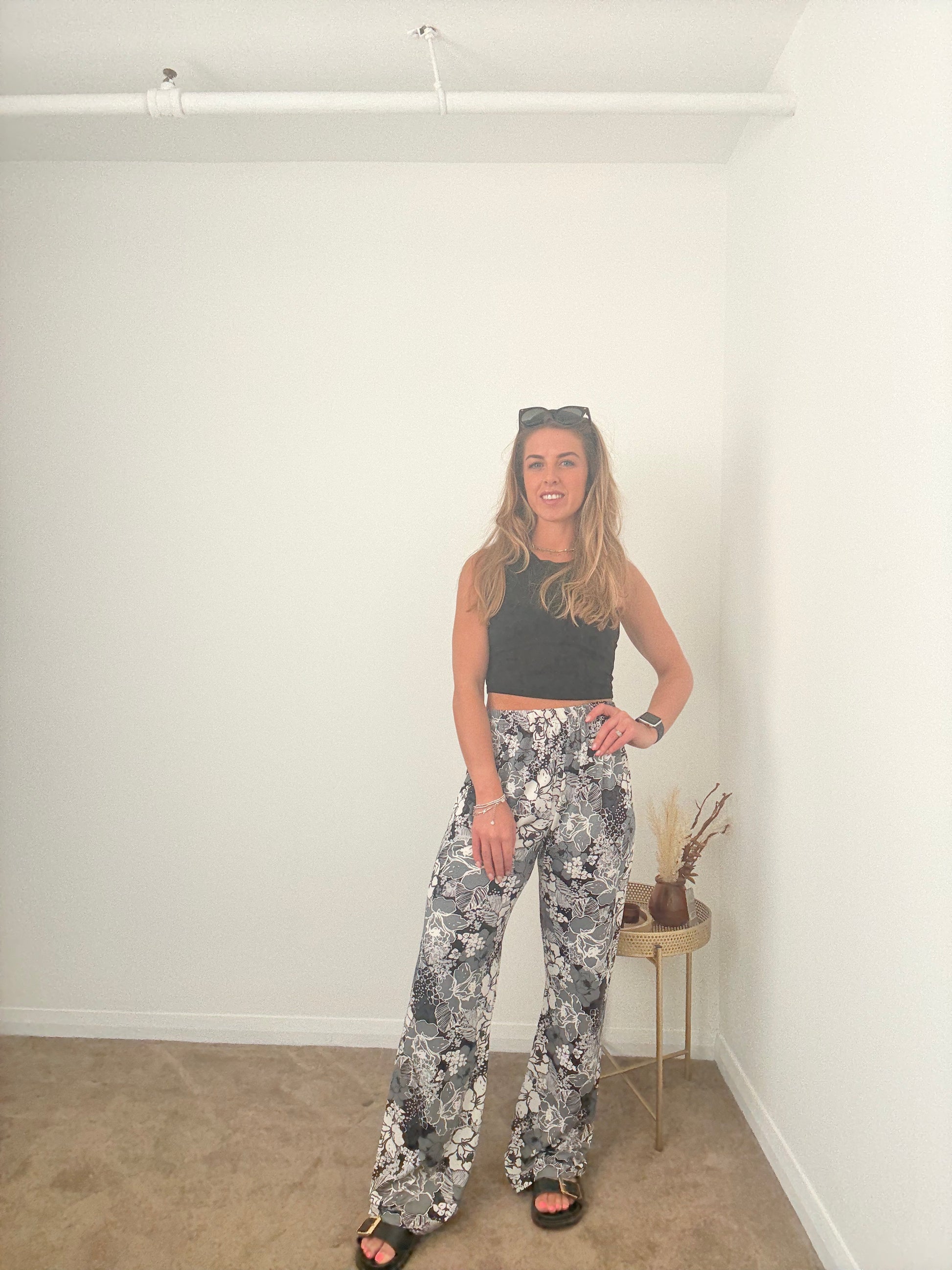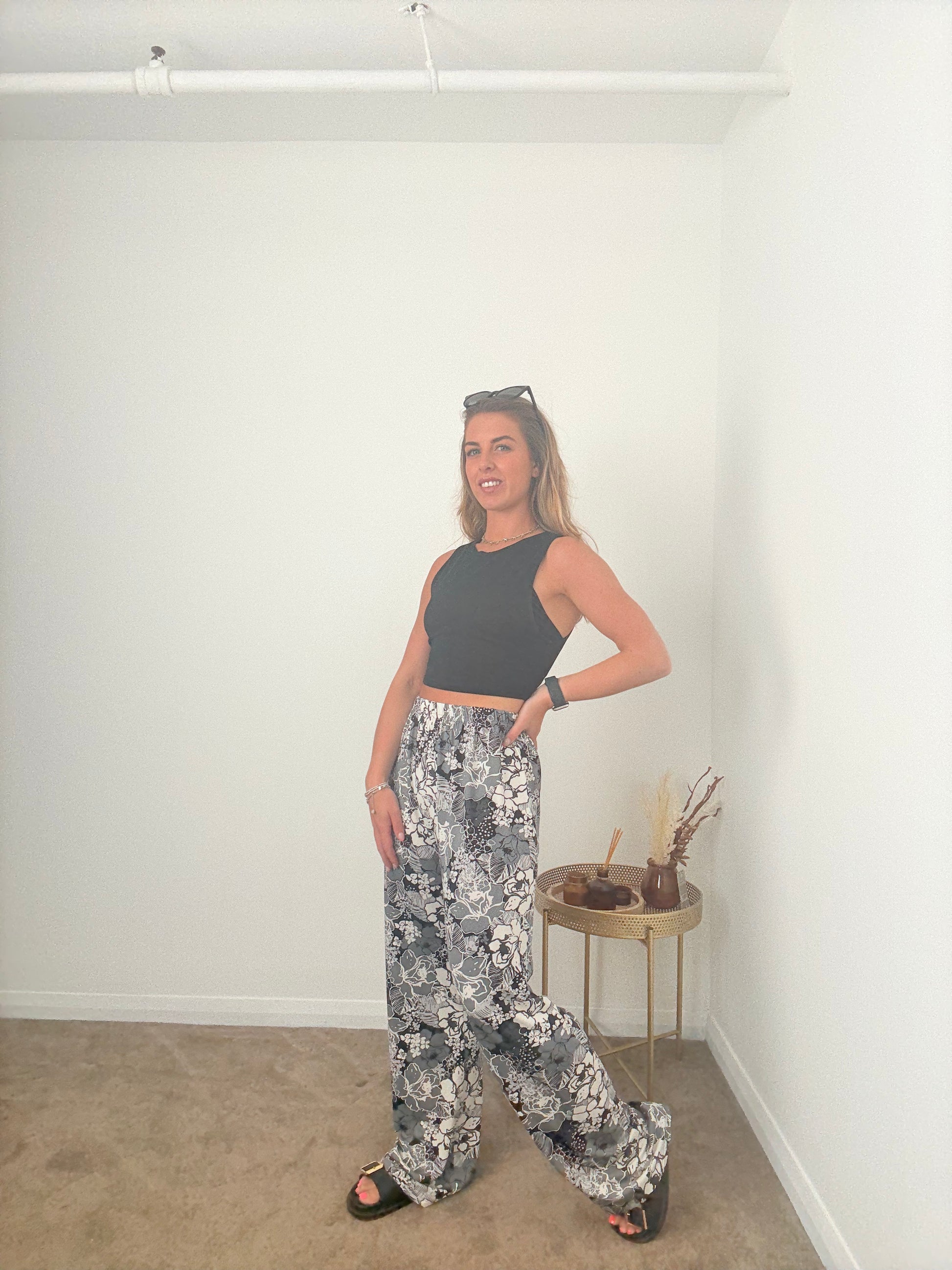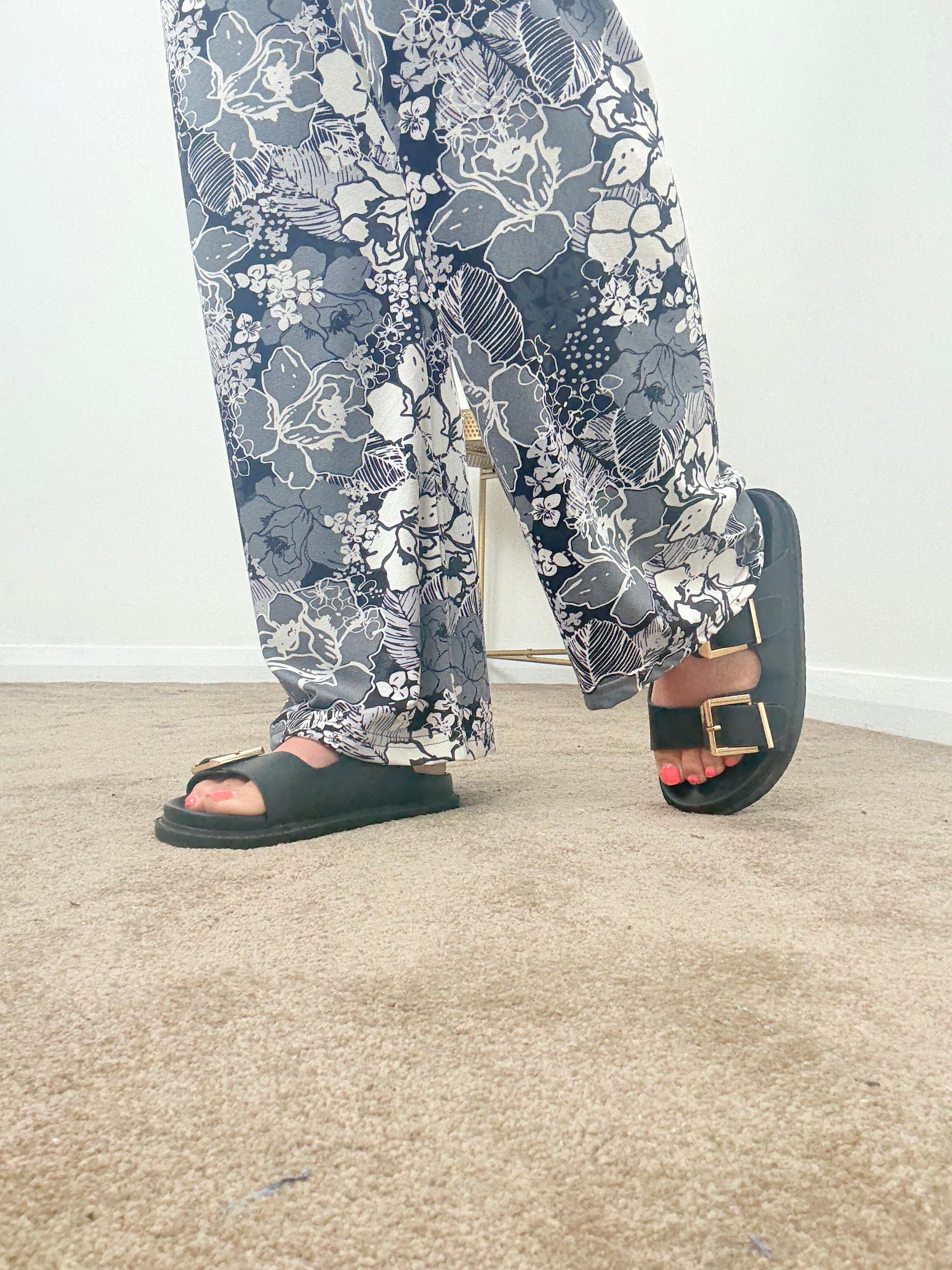 Black Floral Wide Leg Trousers