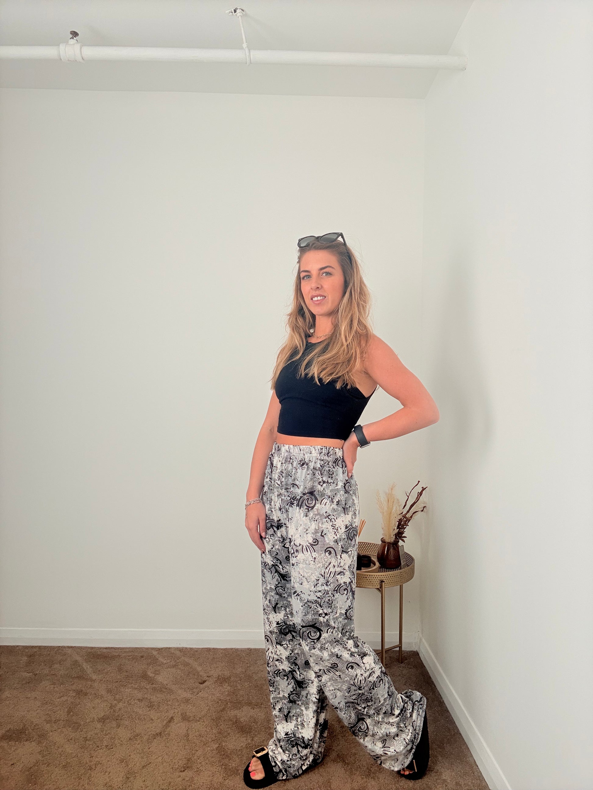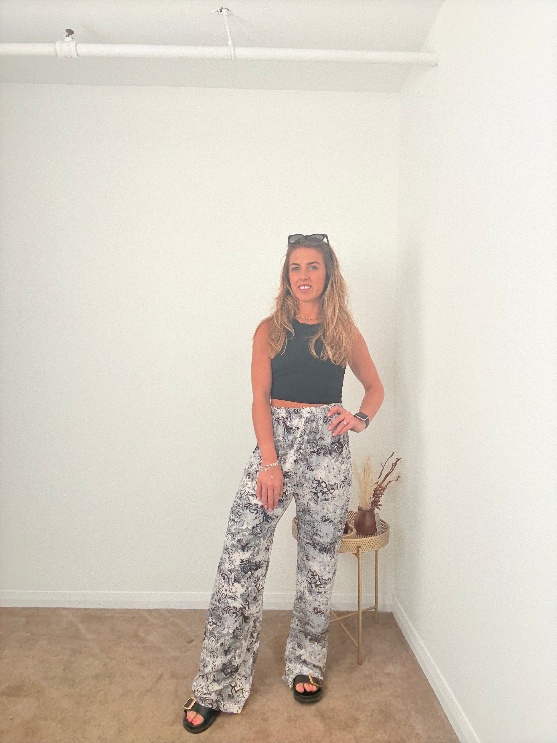 Step out in style with our trendy printed wide leg elasticated trousers! Enjoy the perfect blend of comfort and fashion. Explore our collection today!