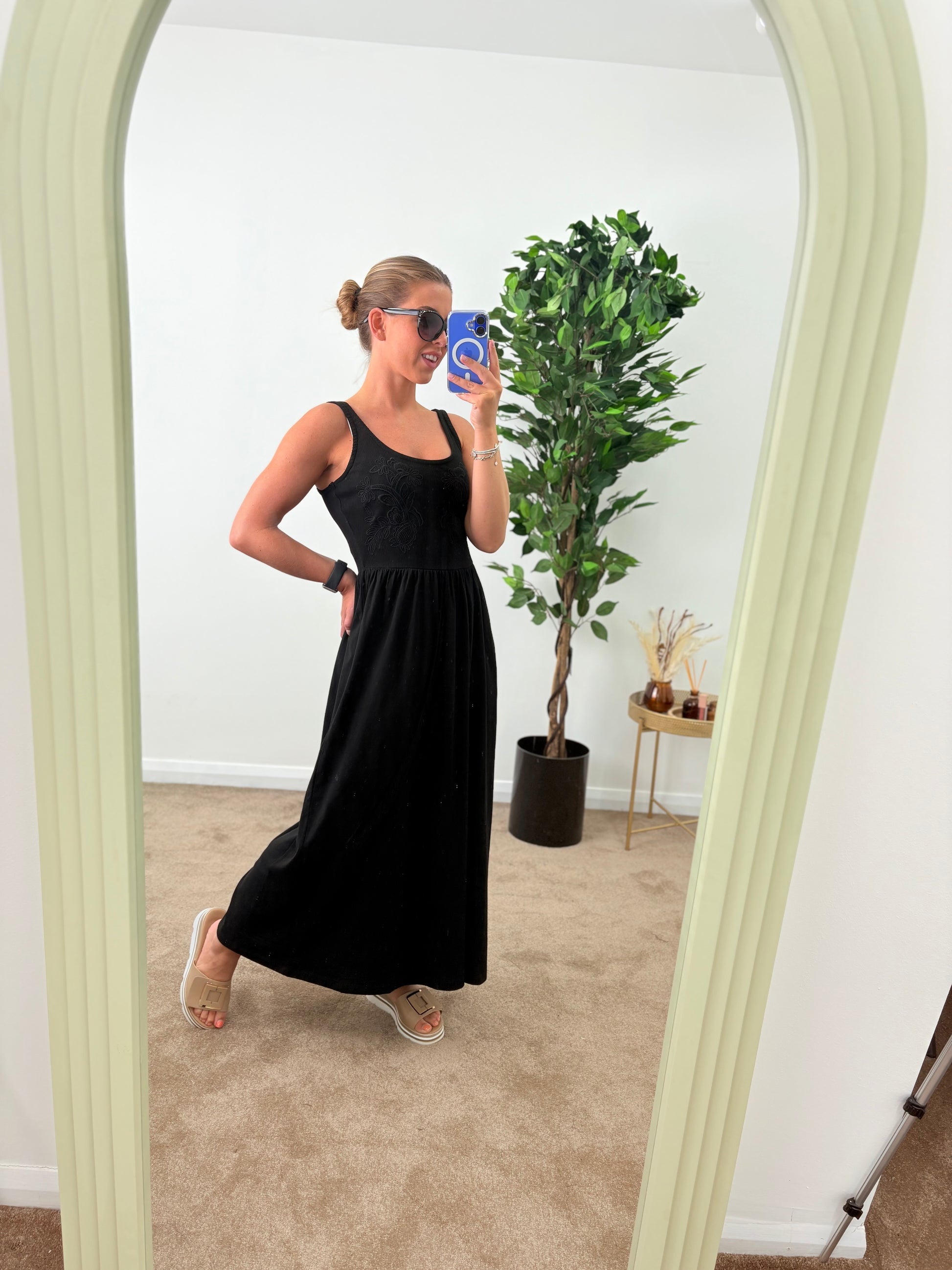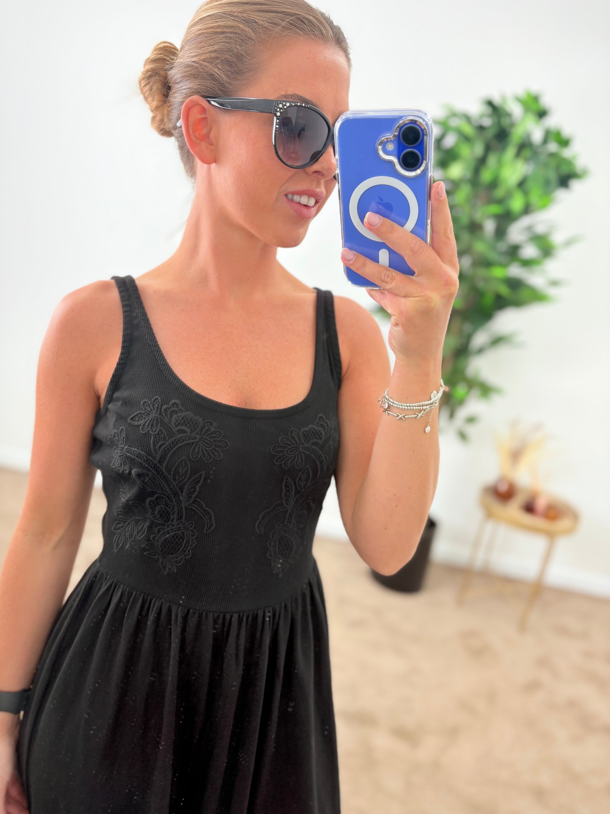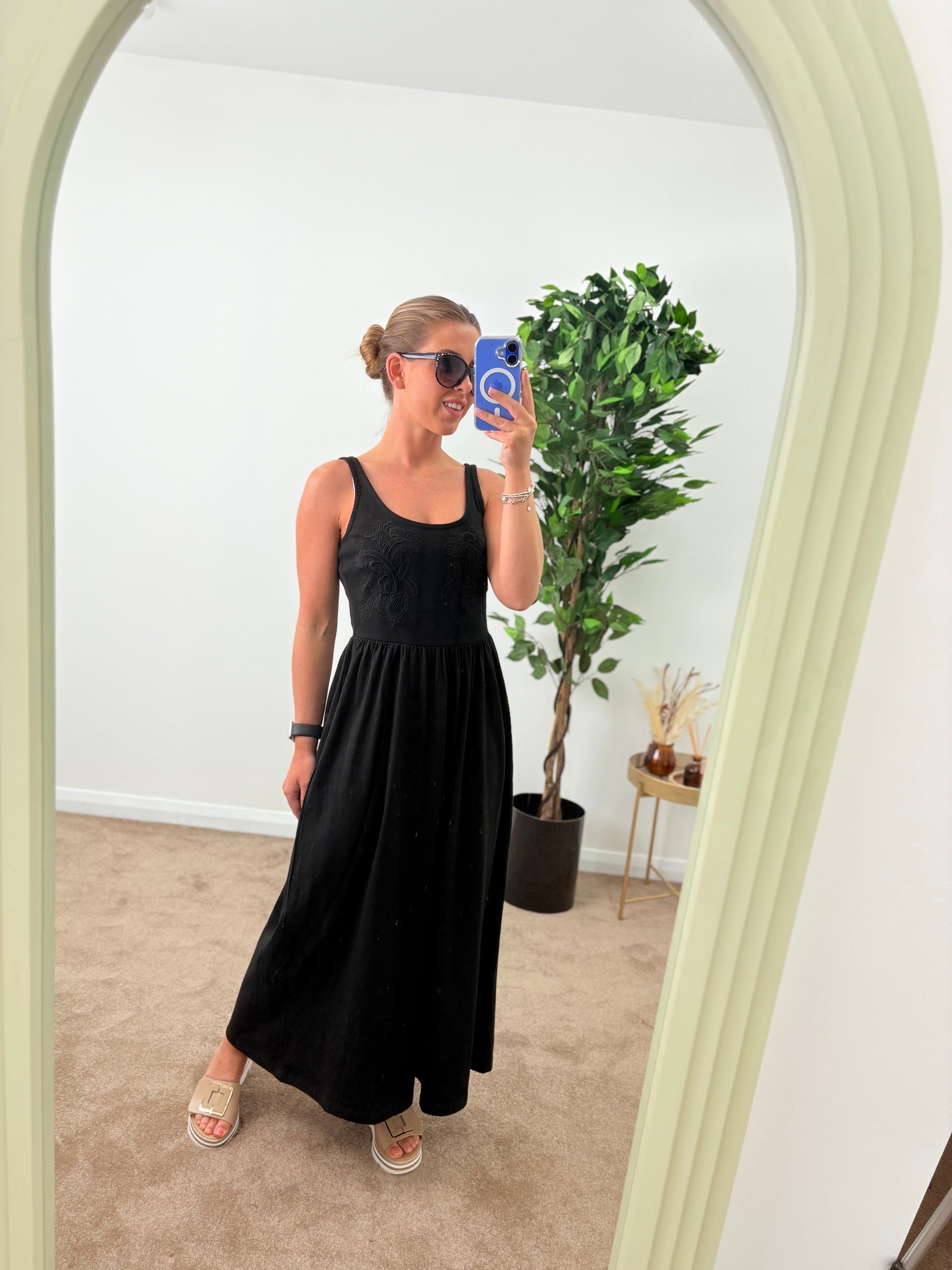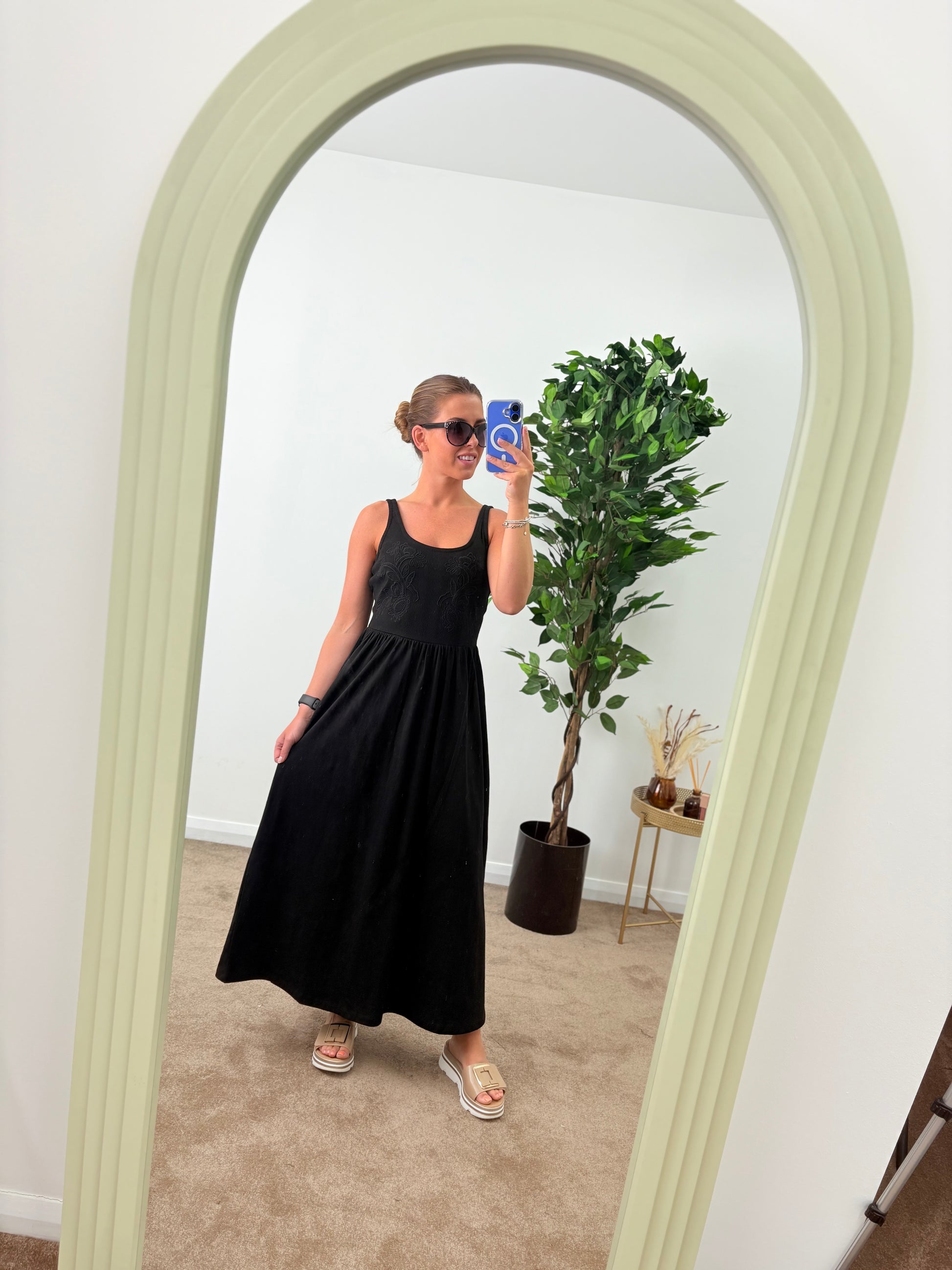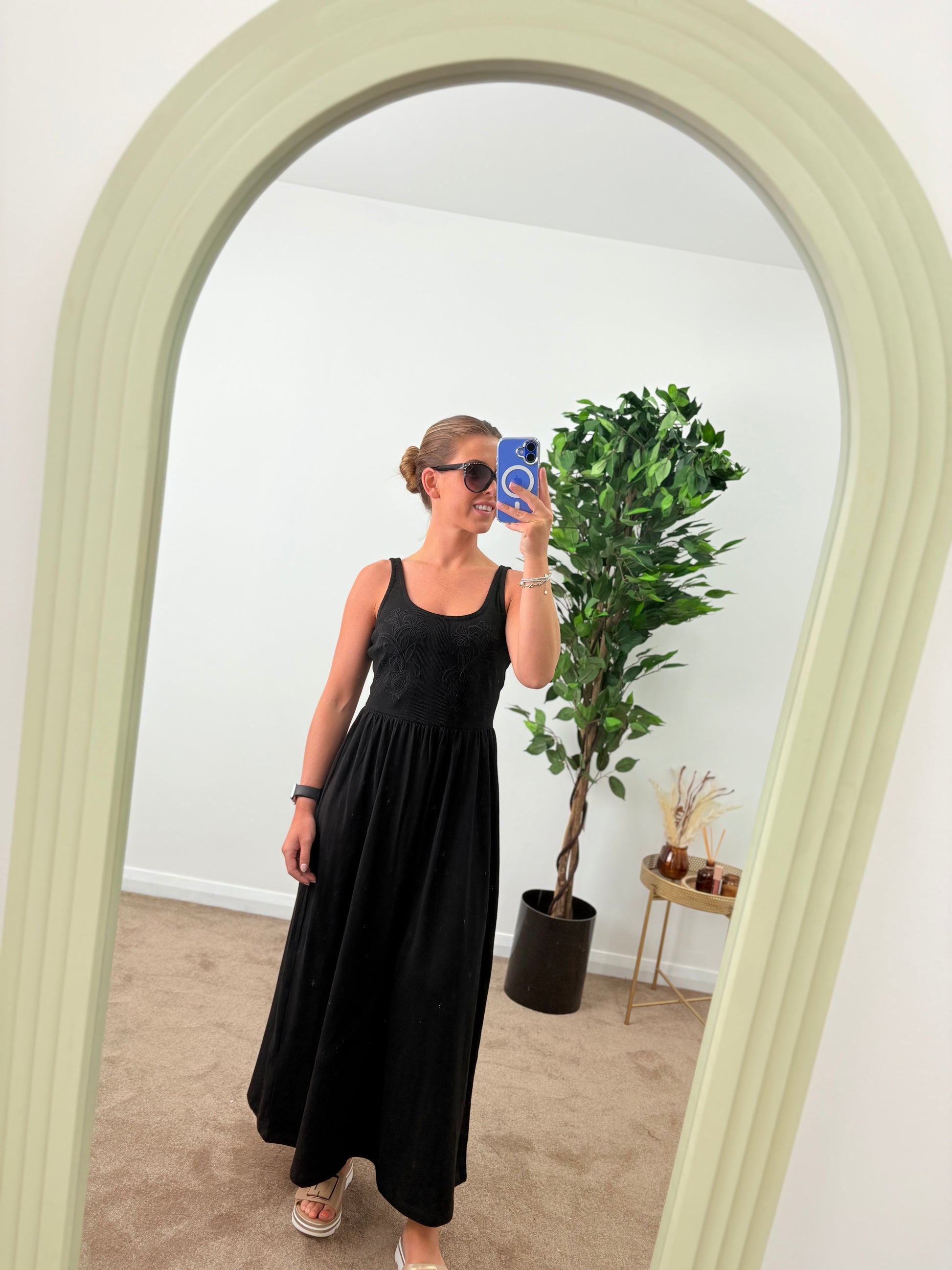 Enhance your summer style with our Summer Embroidered Sundress, designed for those sunny strolls in the park! This stylish black dress showcases intricate embroidery that brings a hint of sophistication while ensuring you stay cool and comfy. Crafted from lightweight fabric that drapes beautifully, it’s perfect for any event, whether it’s a picnic or a night out. Dress it down with your favourite sandals or elevate your look with heels for a versatile outfit that will catch everyone’s eye. Make sure to add this essential piece to your summer wardrobe!