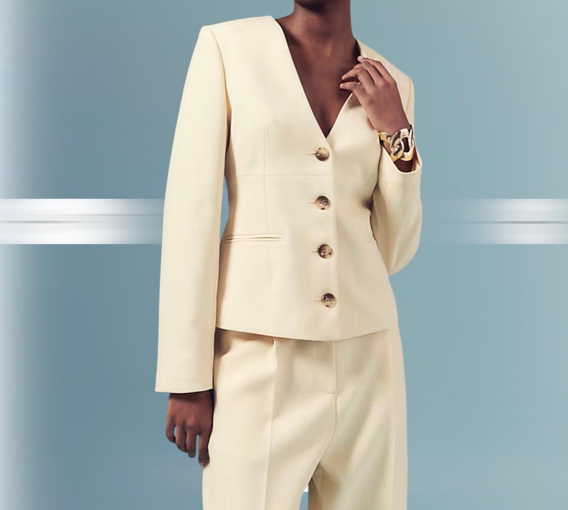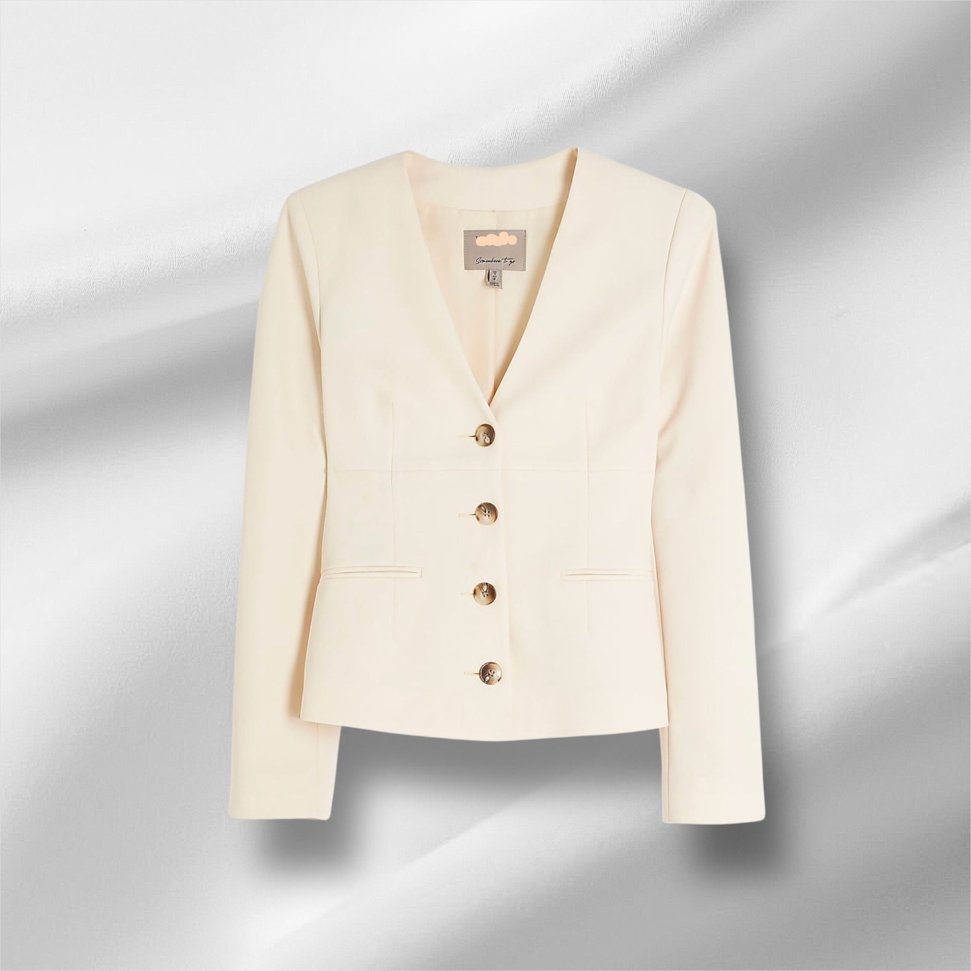 Shop our stunning V-neck buttermilk yellow women's jacket, designed for both comfort and style. A must-have addition to elevate your fashion game!