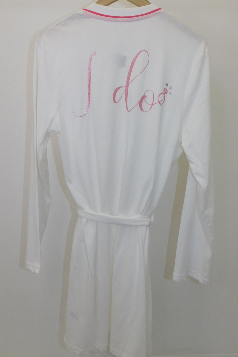 Whether they’re getting ready for the wedding or the hen party, any bride-to-be and her friends will love this dressing gown. The white design boasts a pink piping trim and ‘I do’ in glitter text across the back for a stunning wedding ready finish.