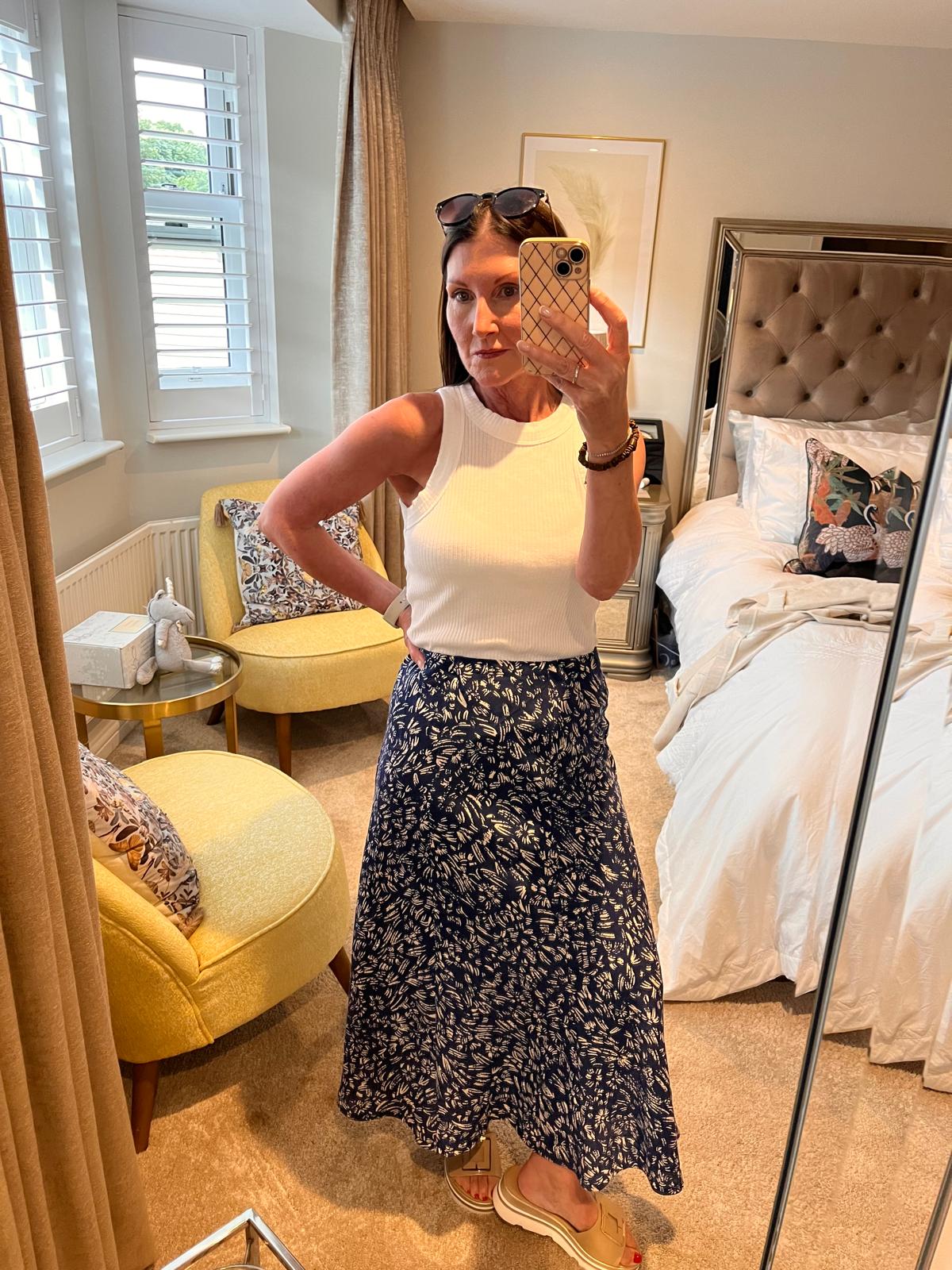 Step out in style with our Linen Feel Navy Skirt! Lightweight and versatile, it’s perfect for any season and pairs beautifully with your favourite tops, blazer or keep it chic and casual with a denim jacket.