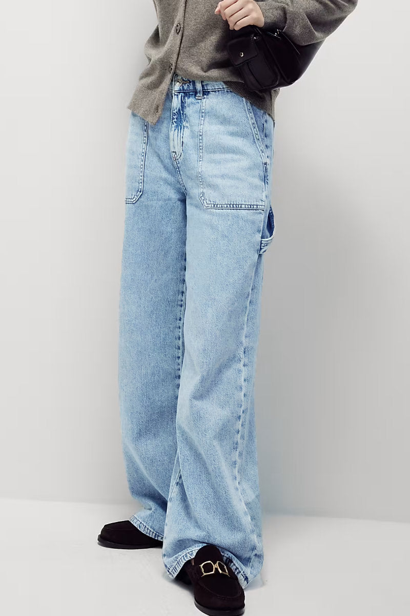 From weekend brunches to casual errands, these jeans deliver an effortlessly stylish vibe with a nod to utility workwear. The wide-leg shape and functional details make them a staple you'll reach for again and again. Style with a tucked-in tee or a cropped knit for a modern twist.