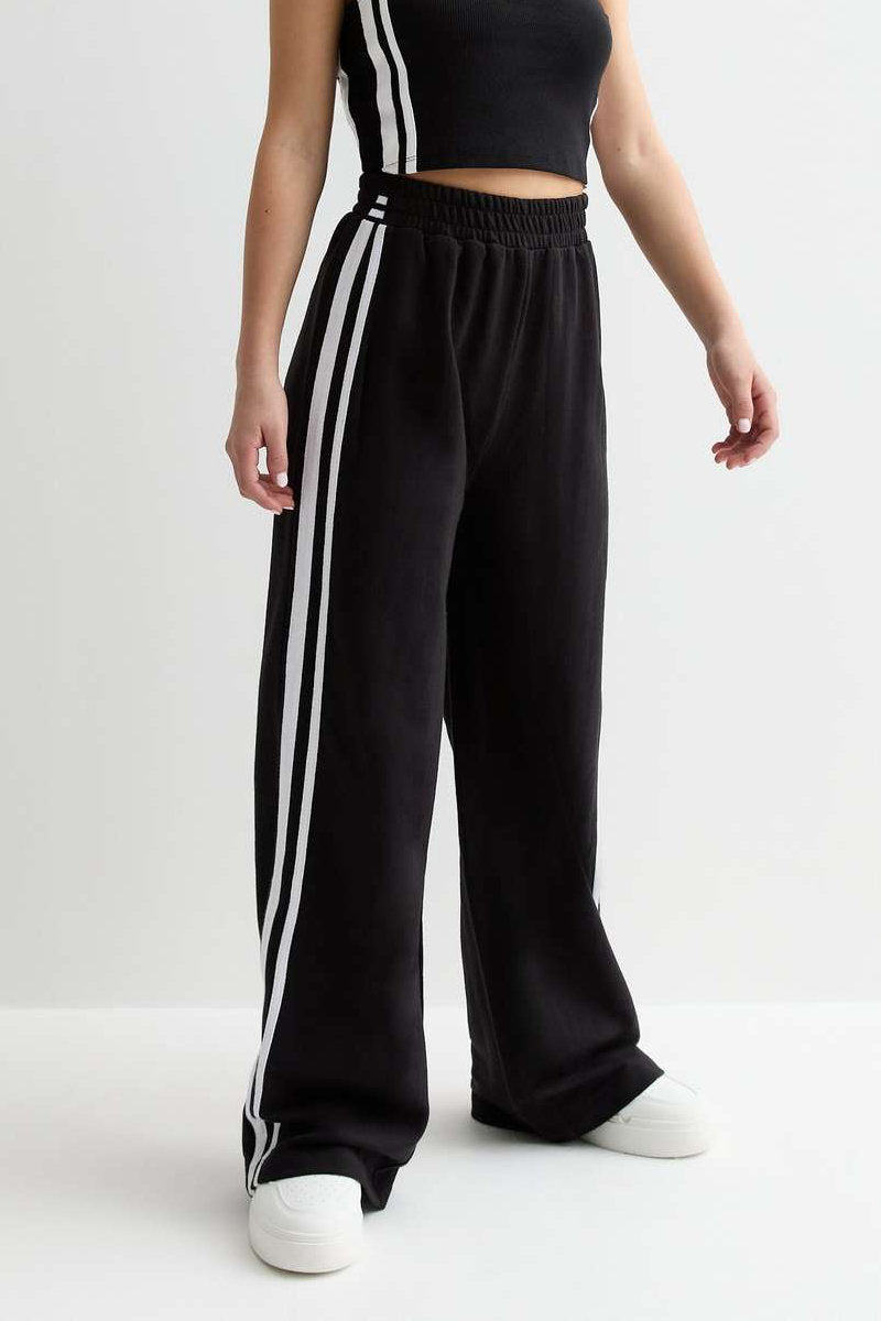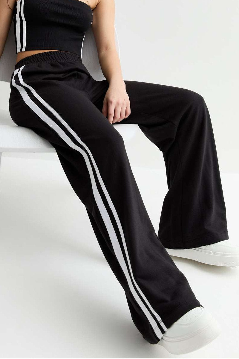 Bring a sporty edge to your casual wardrobe with these Striped Wide-Leg Joggers. Featuring a comfortable elasticated mid-rise waist and bold side stripes, these joggers offer a relaxed yet stylish silhouette. The full-length wide-leg design delivers both freedom of movement and an on-trend look, making them a versatile choice for everything from workouts to weekend lounging.