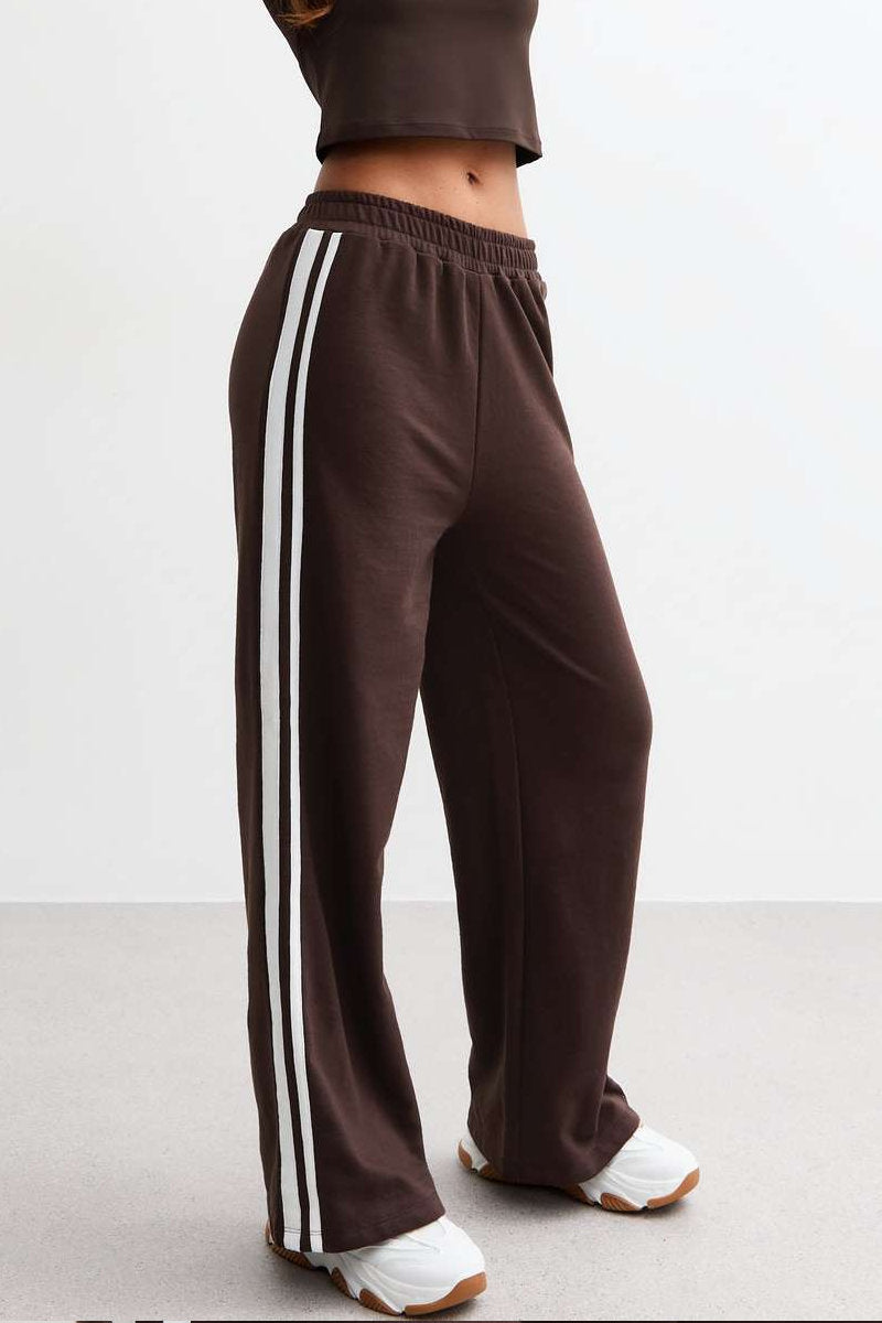 Bring a sporty edge to your casual wardrobe with these Striped Wide-Leg Joggers. Featuring a comfortable elasticated mid-rise waist and bold side stripes, these joggers offer a relaxed yet stylish silhouette. The full-length wide-leg design delivers both freedom of movement and an on-trend look, making them a versatile choice for everything from workouts to weekend lounging.