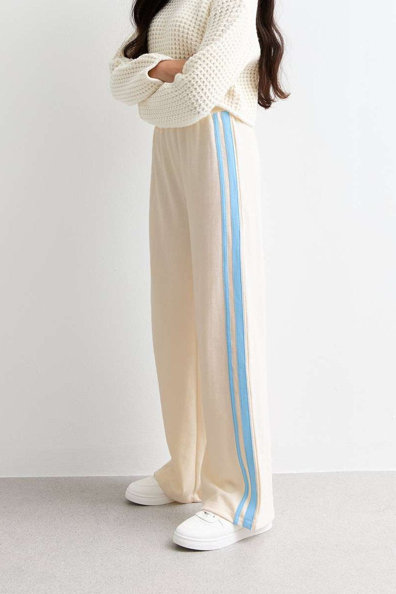 Bring a sporty edge to your casual wardrobe with these Striped Wide-Leg Joggers. Featuring a comfortable elasticated mid-rise waist and bold side stripes, these joggers offer a relaxed yet stylish silhouette. The full-length wide-leg design delivers both freedom of movement and an on-trend look, making them a versatile choice for everything from workouts to weekend lounging.