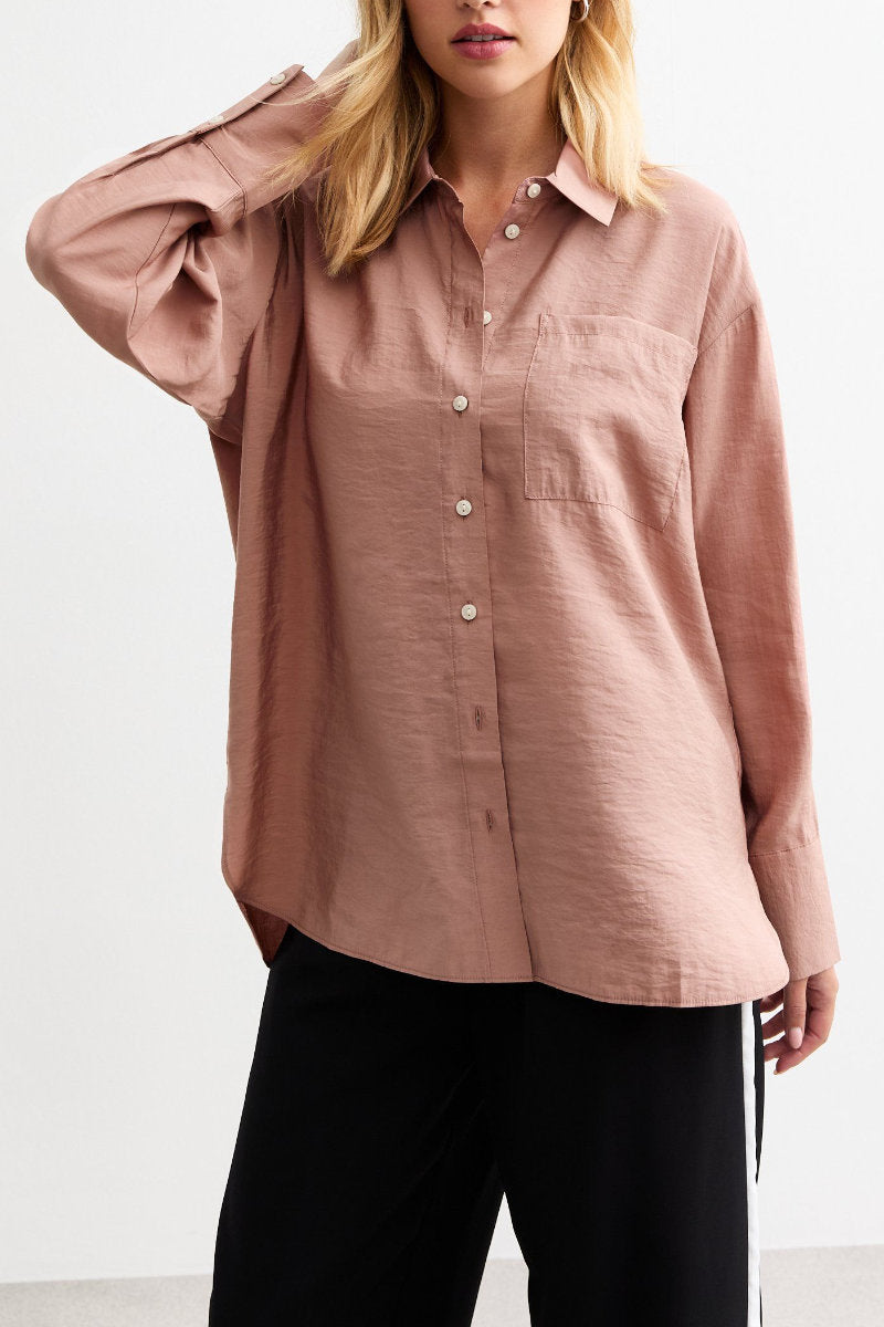 Ex New Look Textured Long Sleeve Pocket Shirt Pink