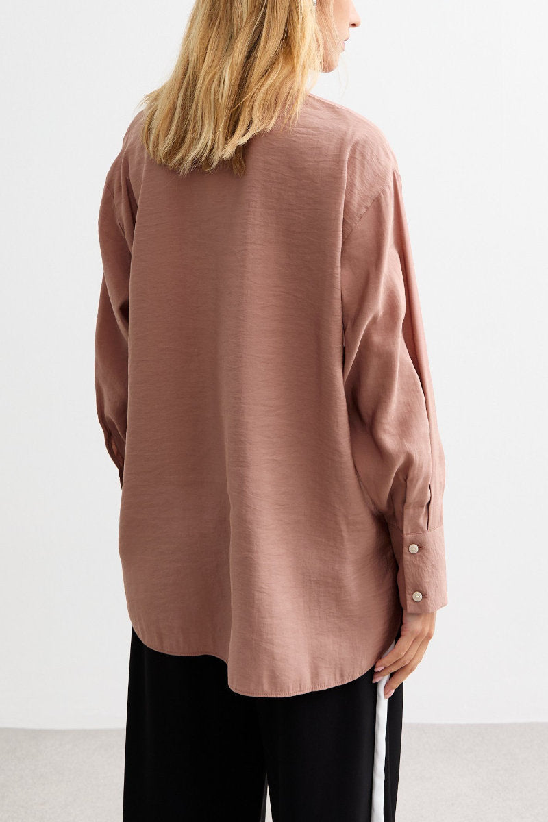 - Button-down fastening with collared neckline