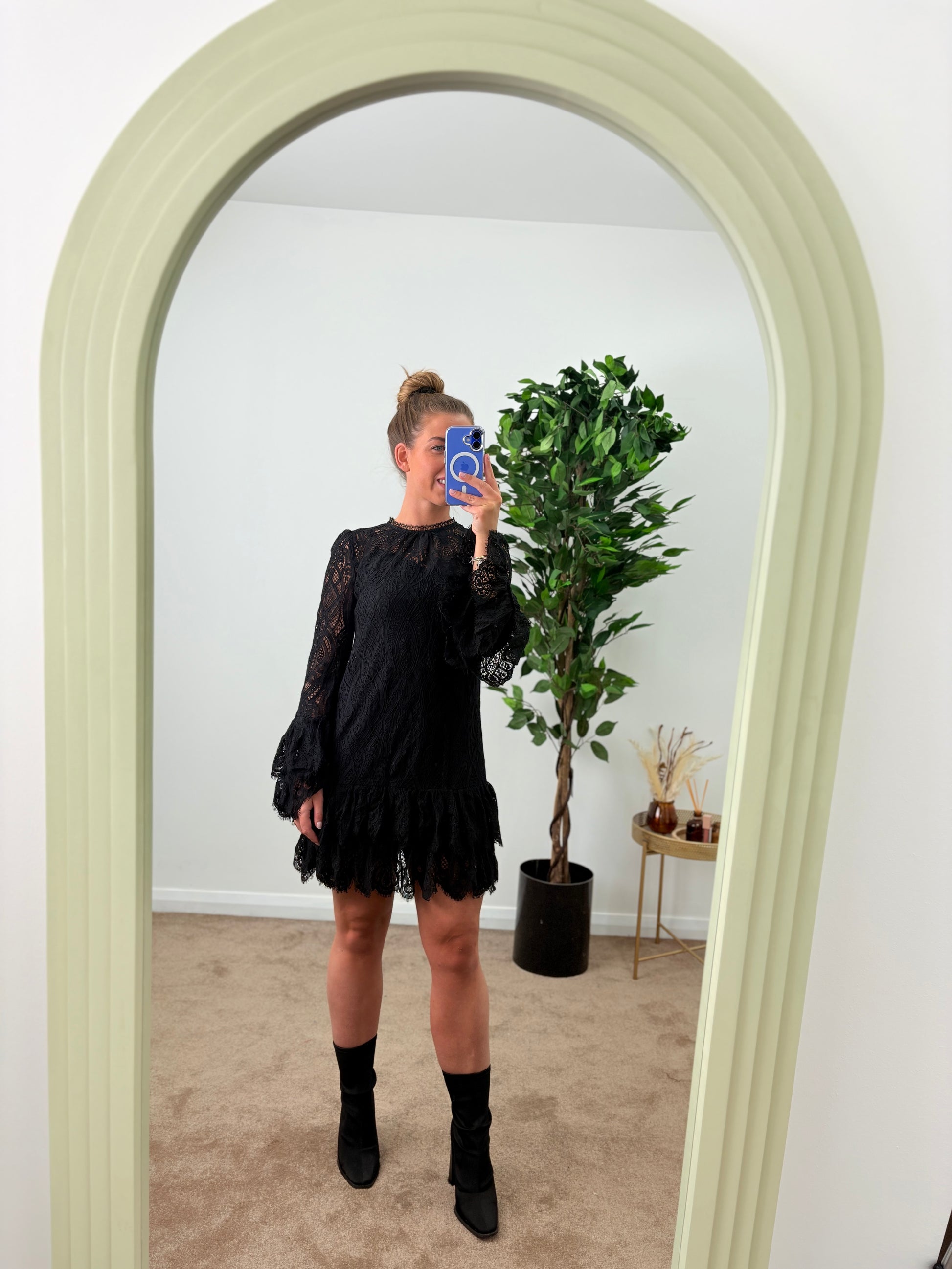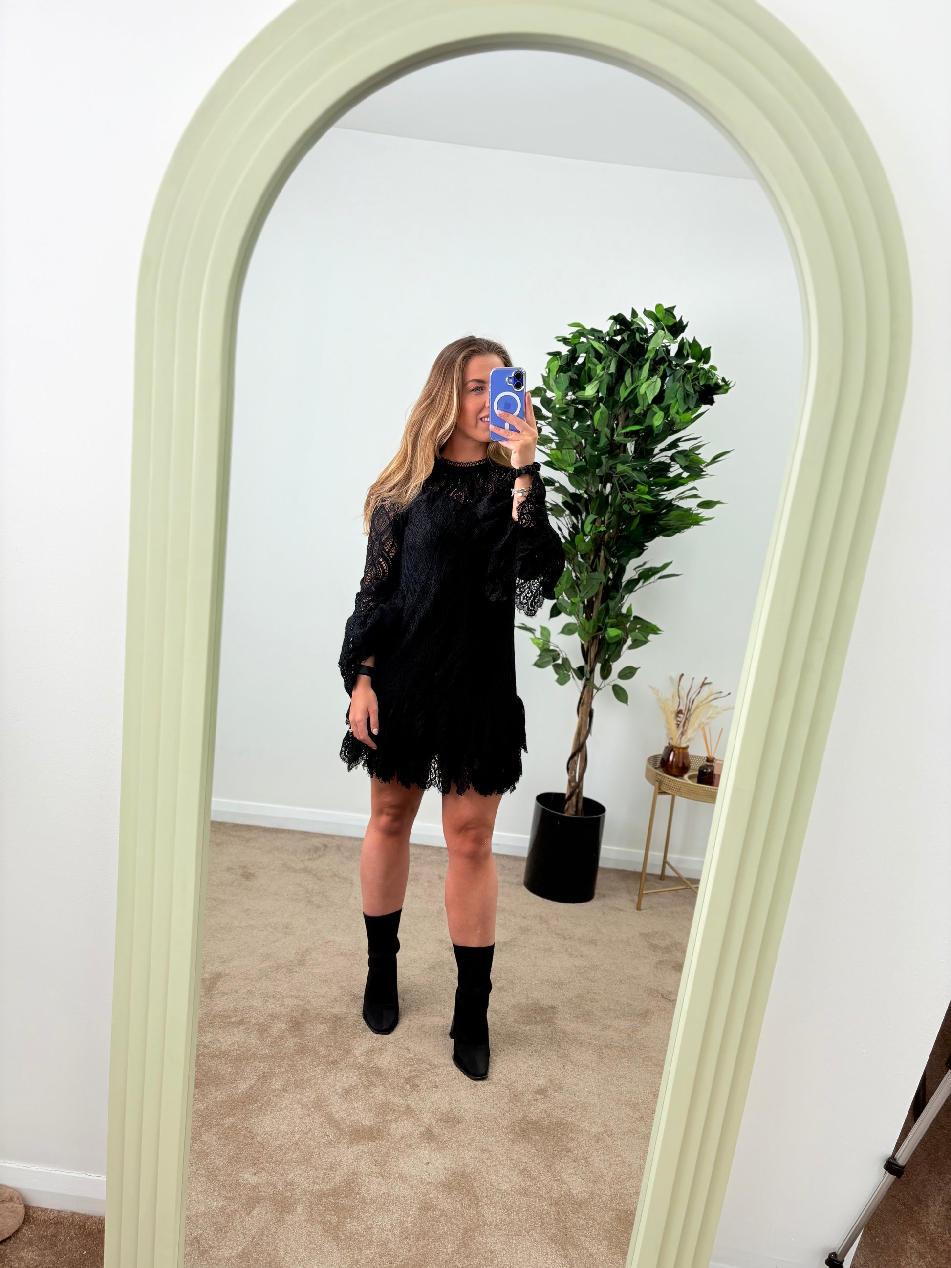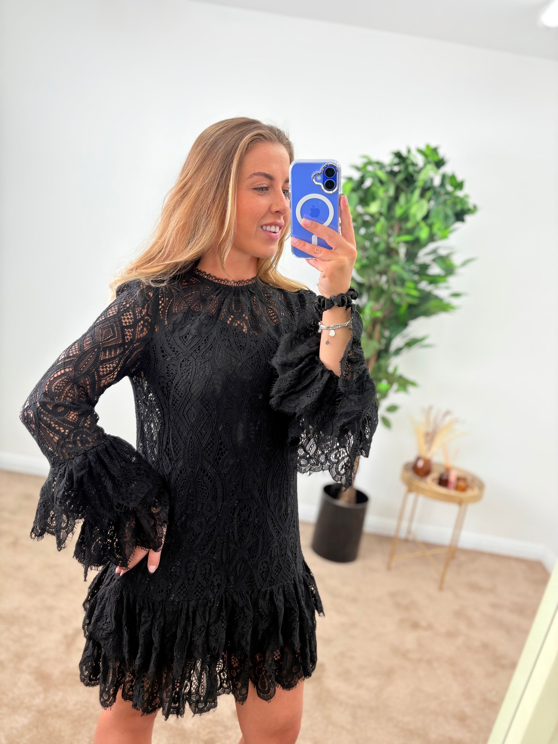Step out in style and elegance with our stunning lace tunic dress! This captivating black lace dress features long sleeves that effortlessly blend sophistication with a hint of allure. Perfect for any occasion, whether it's a night out or a special event, its intricate lace design and flattering silhouette will make you feel like the belle of the ball. Pair it with your favourite heels and let the compliments roll in!