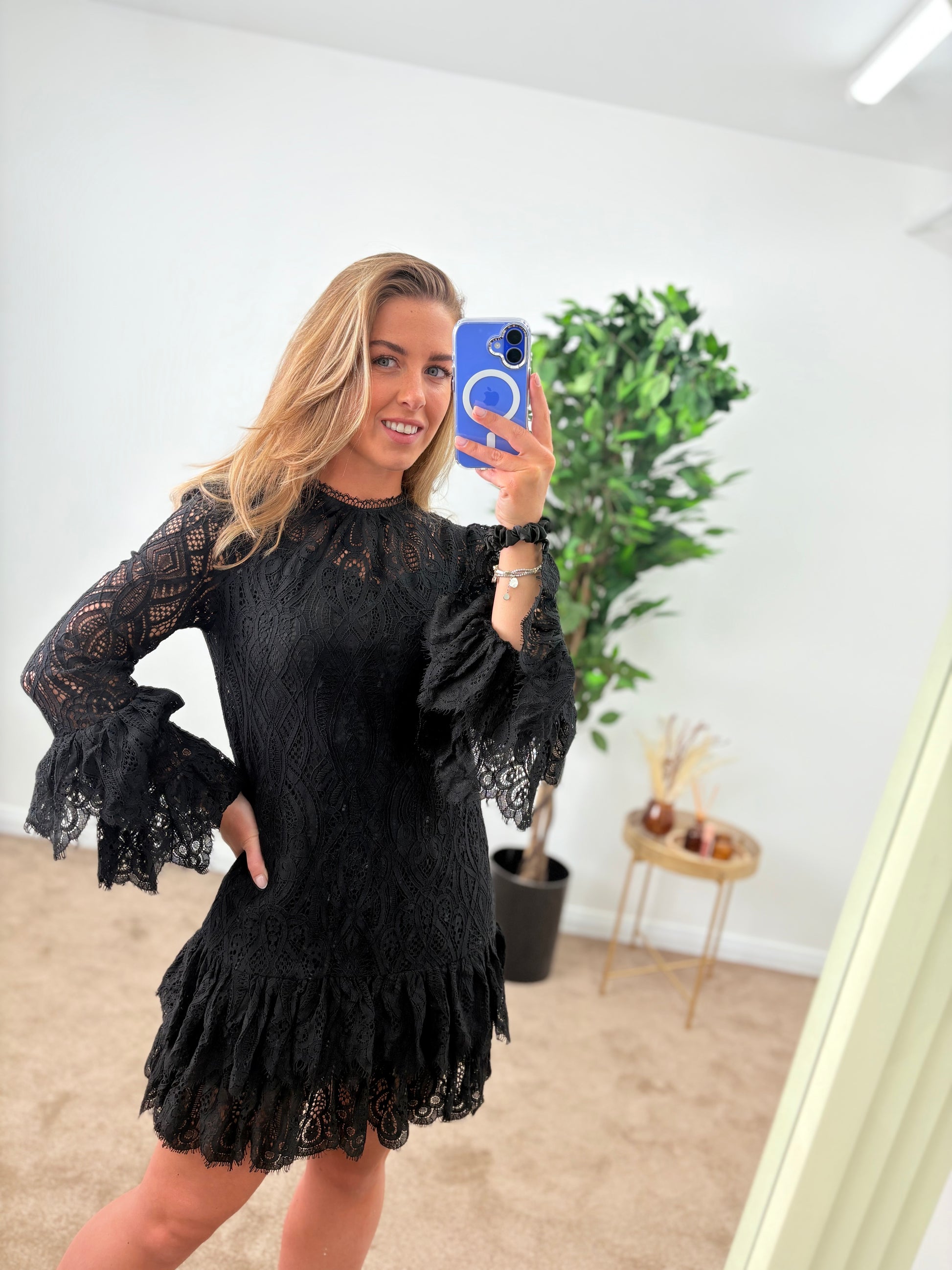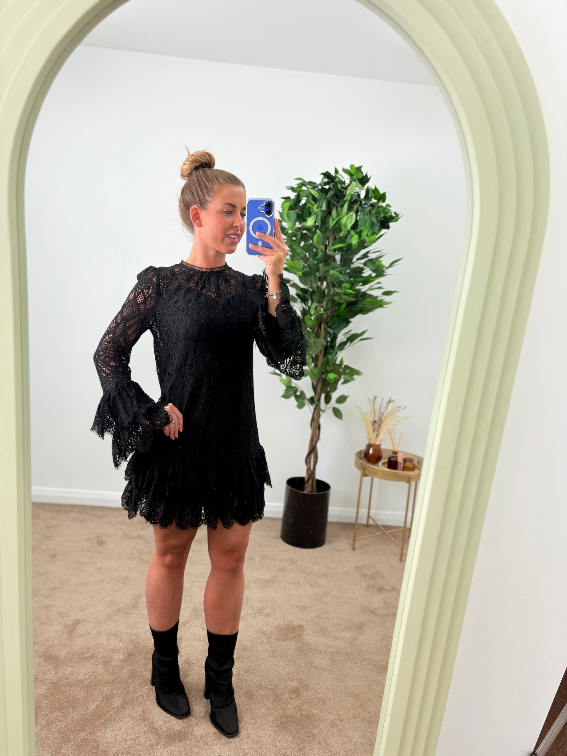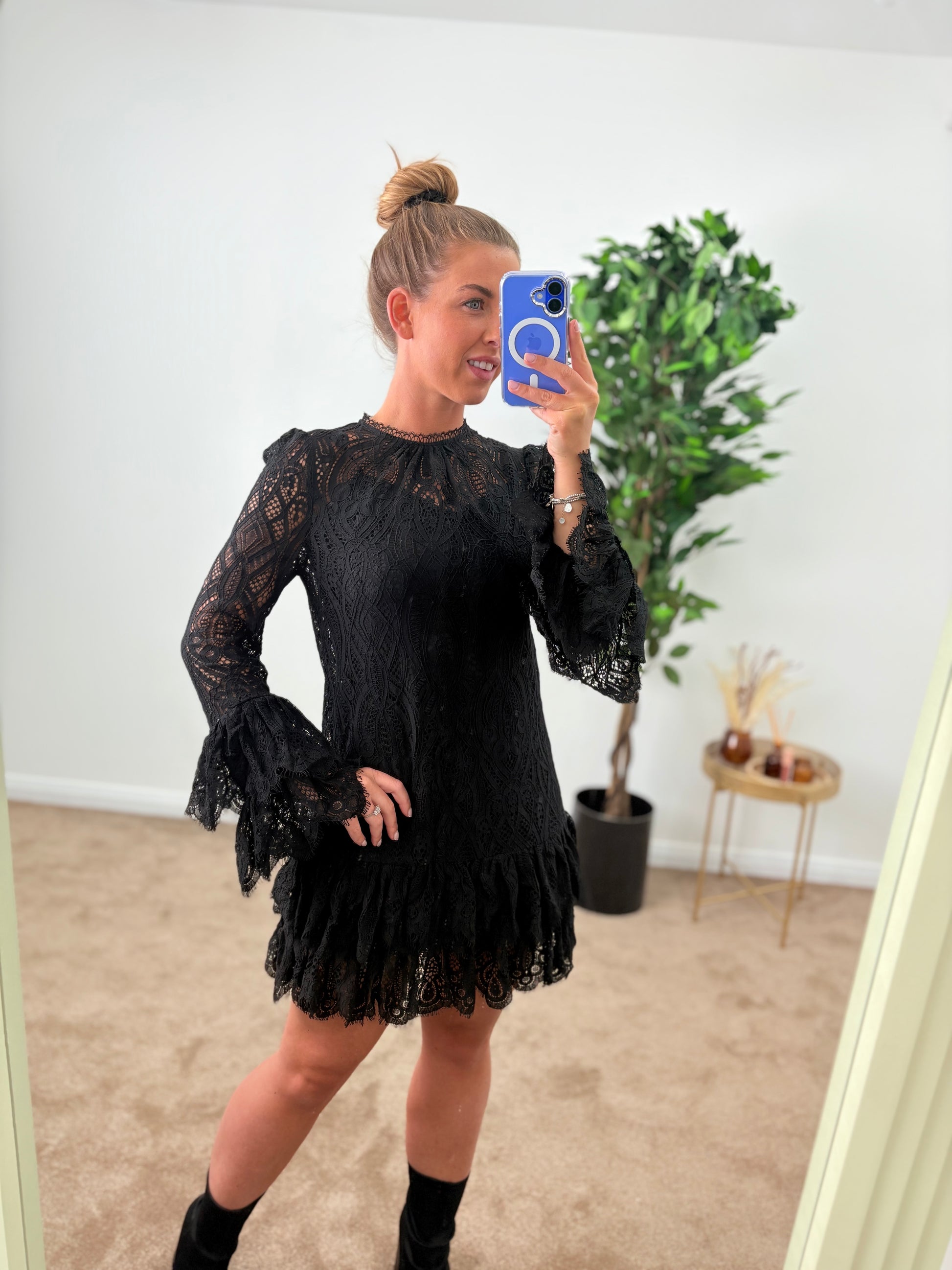 Step out in style and elegance with our stunning lace tunic dress! This captivating black lace dress features long sleeves that effortlessly blend sophistication with a hint of allure. Perfect for any occasion, whether it's a night out or a special event, its intricate lace design and flattering silhouette will make you feel like the belle of the ball. Pair it with your favourite heels and let the compliments roll in!