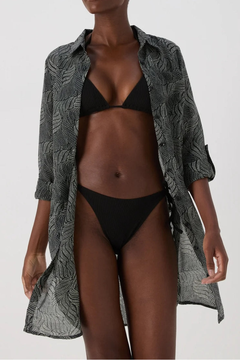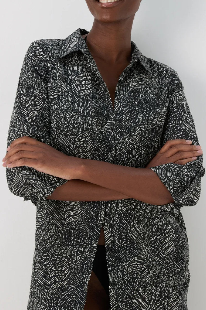 Look effortlessly stylish at the beach or by the pool with this lightweight black spot print beach shirt. Designed to drape beautifully over your swimwear, it combines relaxed comfort with a polished, summery finish, ideal for holidays or laid-back days in the sun.