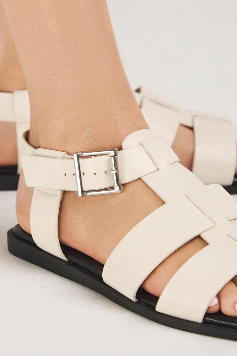 Step into effortless style and comfort with the Dahlia Fisherman Flat Sandals. Designed with a classic fisherman silhouette, these sandals feature wide, cross-over straps that provide a secure fit and a modern, minimalist look. The soft, cushioned footbed ensures maximum comfort for all-day wear, while the adjustable ankle strap with a sleek buckle closure offers a customizable fit. The durable rubber sole provides excellent traction and stability, making these sandals perfect for both casual outings and dressier occasions. Available in a versatile neutral colour, the Dahlia Fisherman Flat Sandals effortlessly complement any wardrobe.