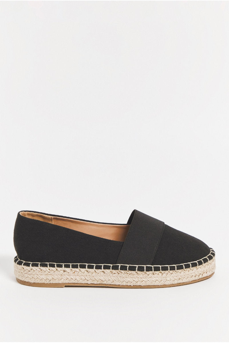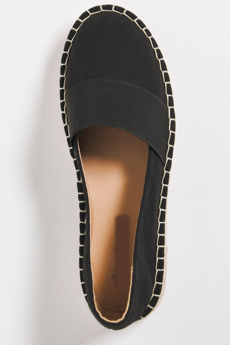 The sleek black design makes these shoes incredibly versatile, easily pairing with a variety of outfits for different occasions. Whether you're heading to a casual lunch or a relaxed evening out, these espadrilles are the perfect addition to your wardrobe.