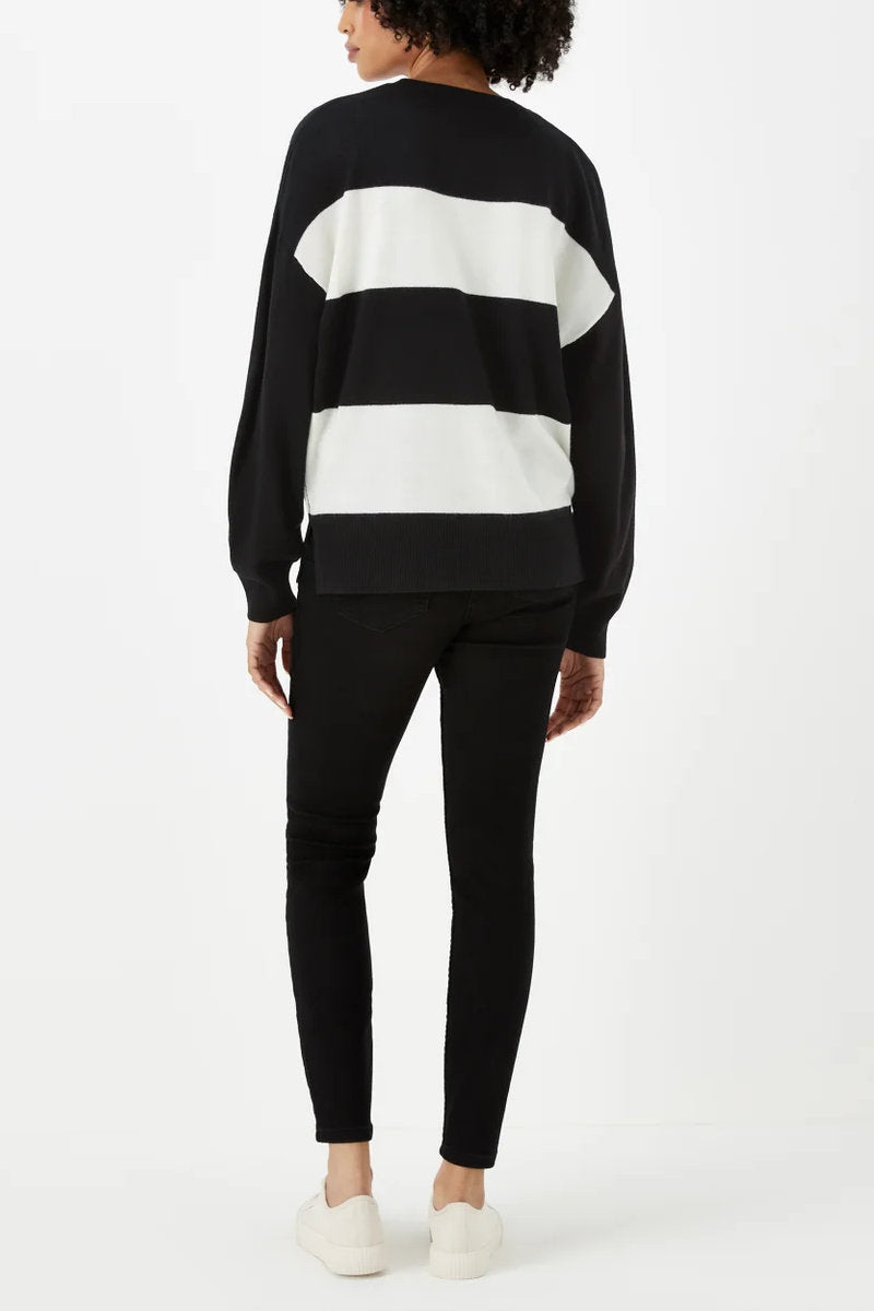 Elevate your casual wardrobe with this Black & Cream Batwing Sleeve Soft Touch Jumper. This cosy and stylish jumper features monochrome stripes, bringing a classic yet contemporary touch to your outfit. Crafted from soft-touch material, it promises all-day comfort while maintaining a chic look. The batwing sleeves add a hint of sophistication, making it easy to dress up or down.