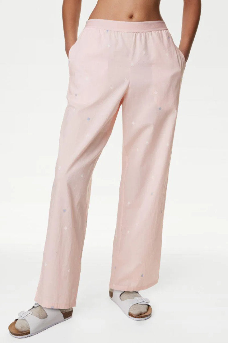 Bring a touch of whimsy to your bedtime routine with these Pure Cotton Star Print Pyjama Bottoms. Made from soft, breathable cotton, they’re designed for ultimate comfort while adding a playful twist to your nightwear collection. The relaxed, long-length silhouette ensures a cosy fit that’s perfect for winding down after a busy day.