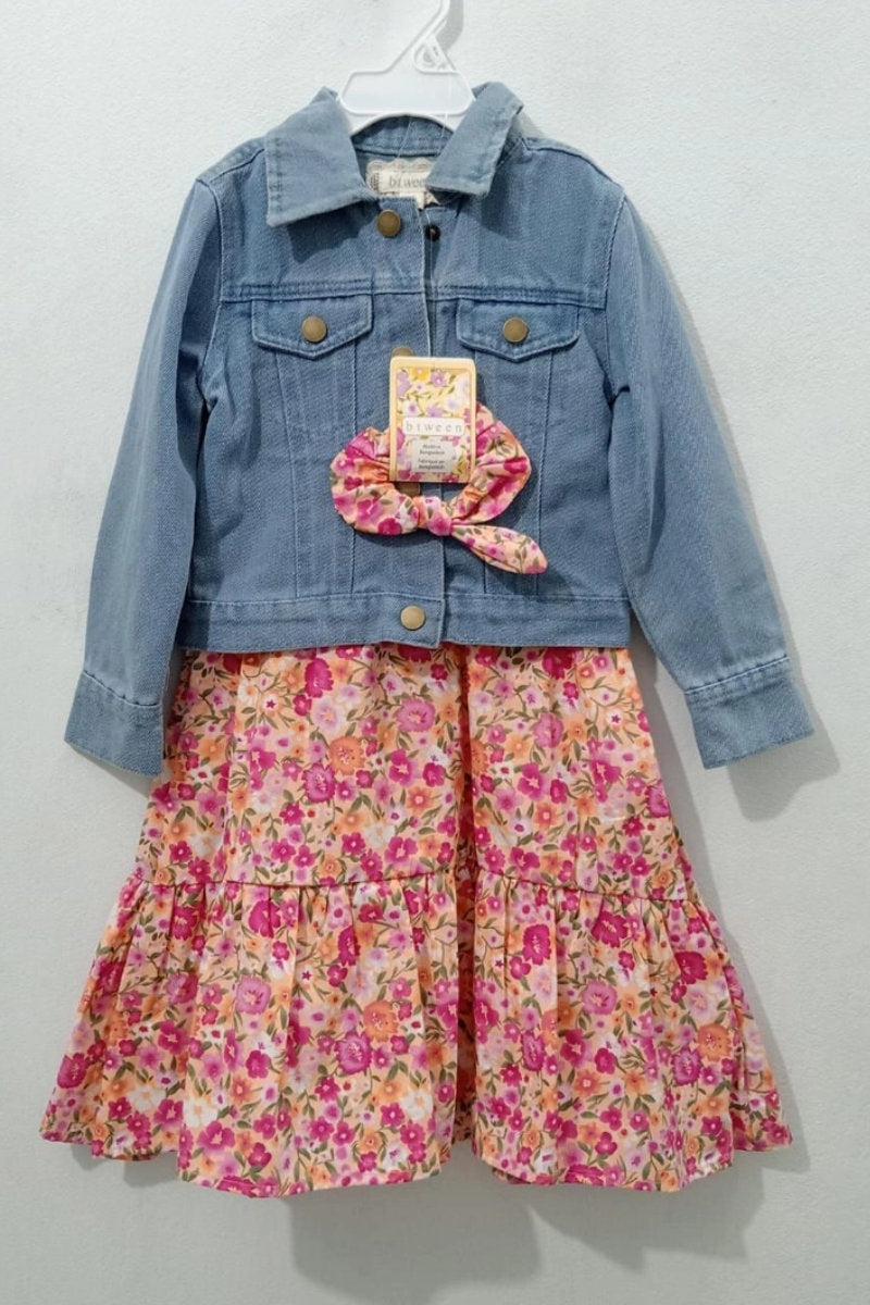 This adorable 3-piece set is perfect for any little trendsetter! Featuring a floral tiered dress, a classic light denim jacket, and a matching scrunchie, it's an effortless outfit that blends charm with practicality. Great for parties, days out, or casual occasions where style still matters.