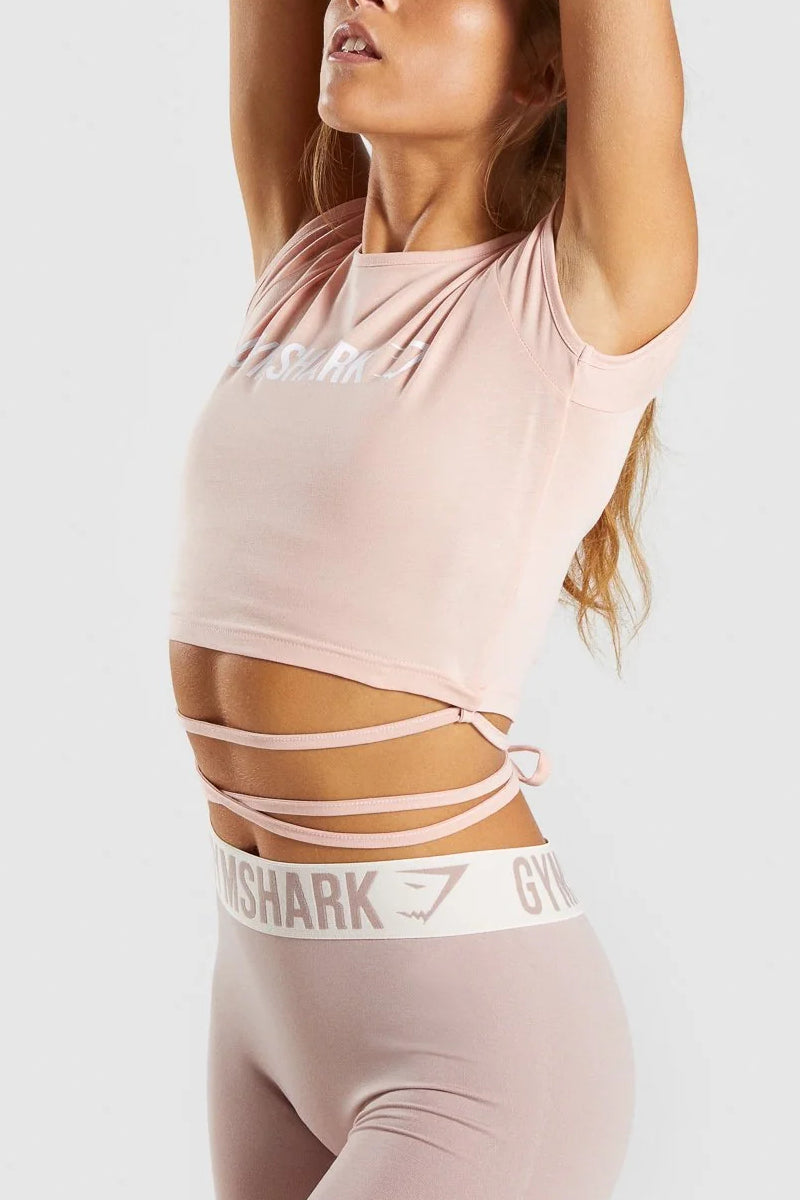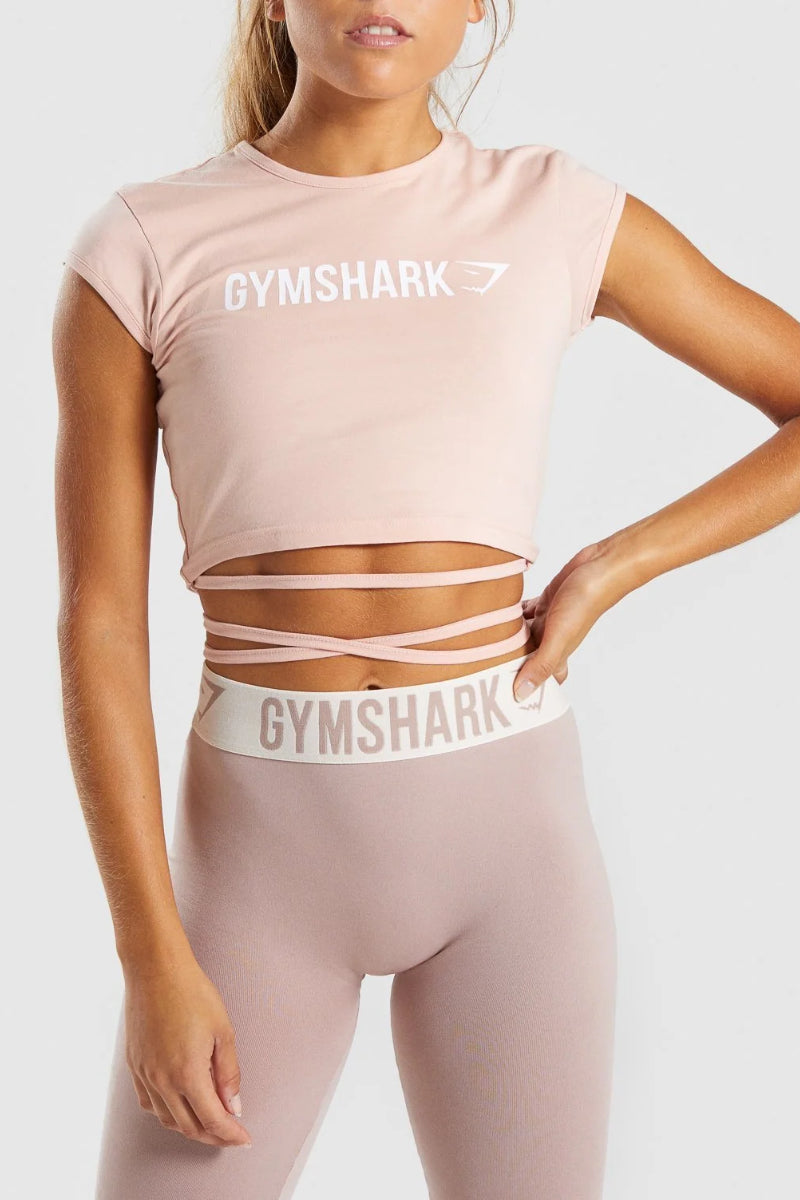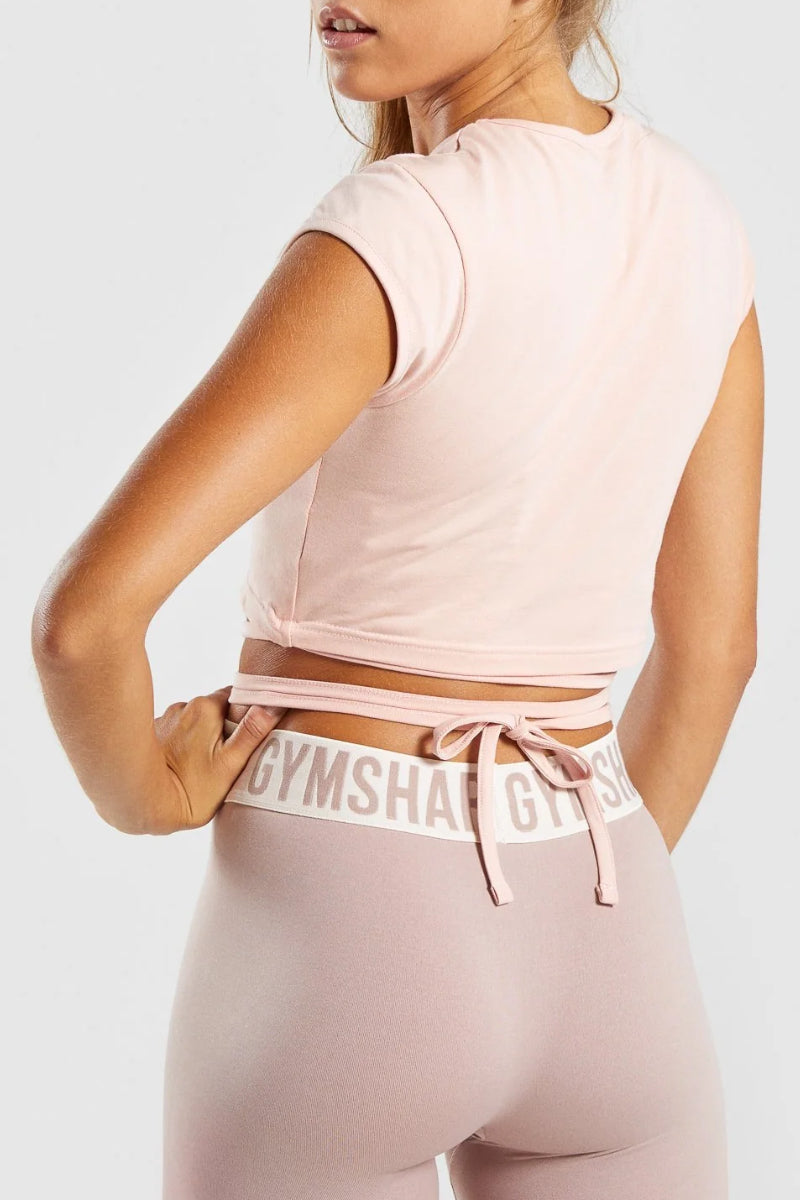 Gymshark Ribbon Capped Sleeve Crop Top Blush Nude
