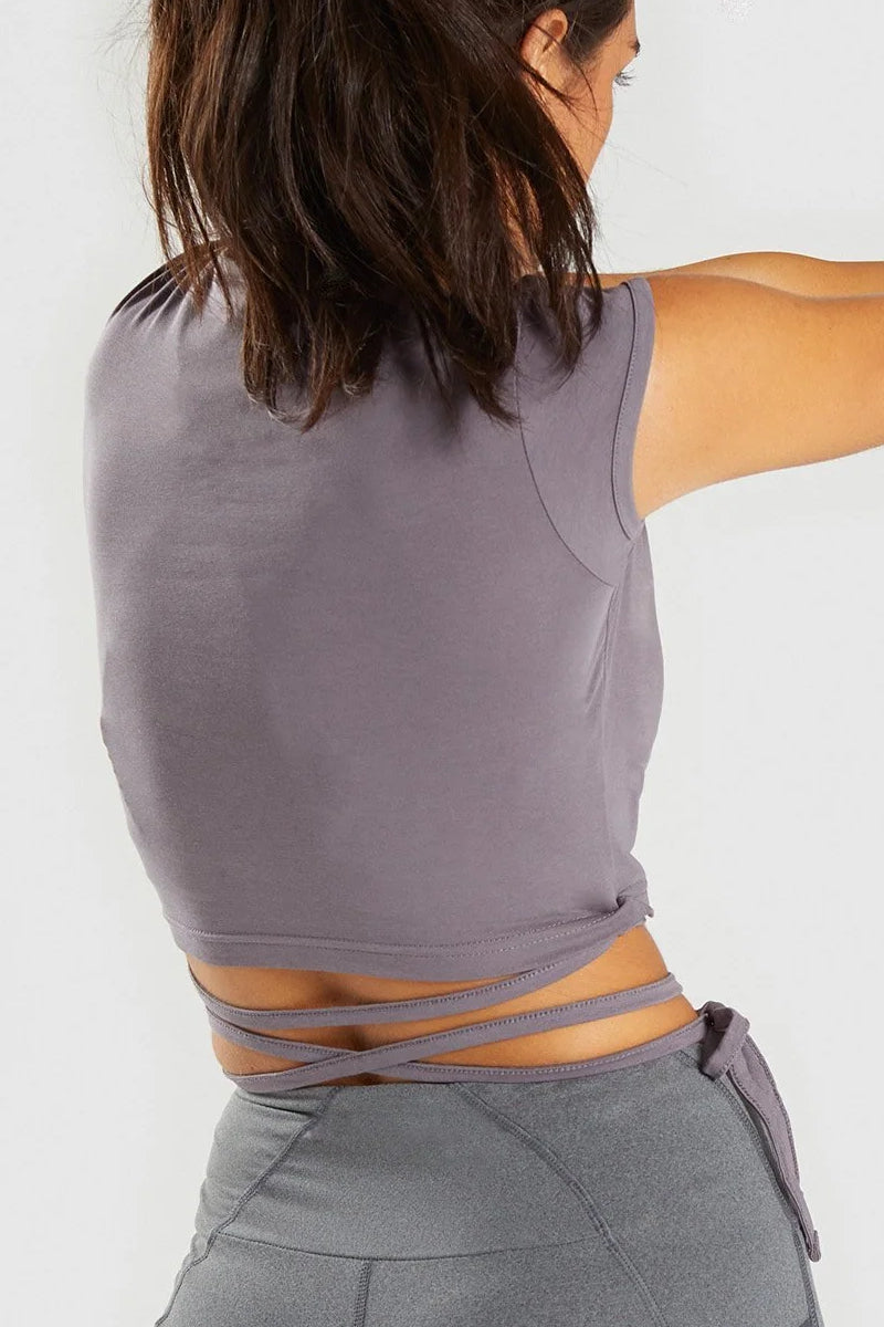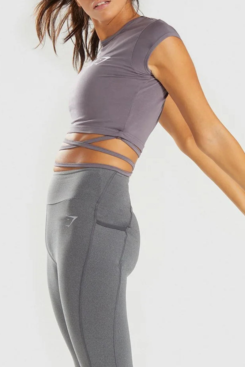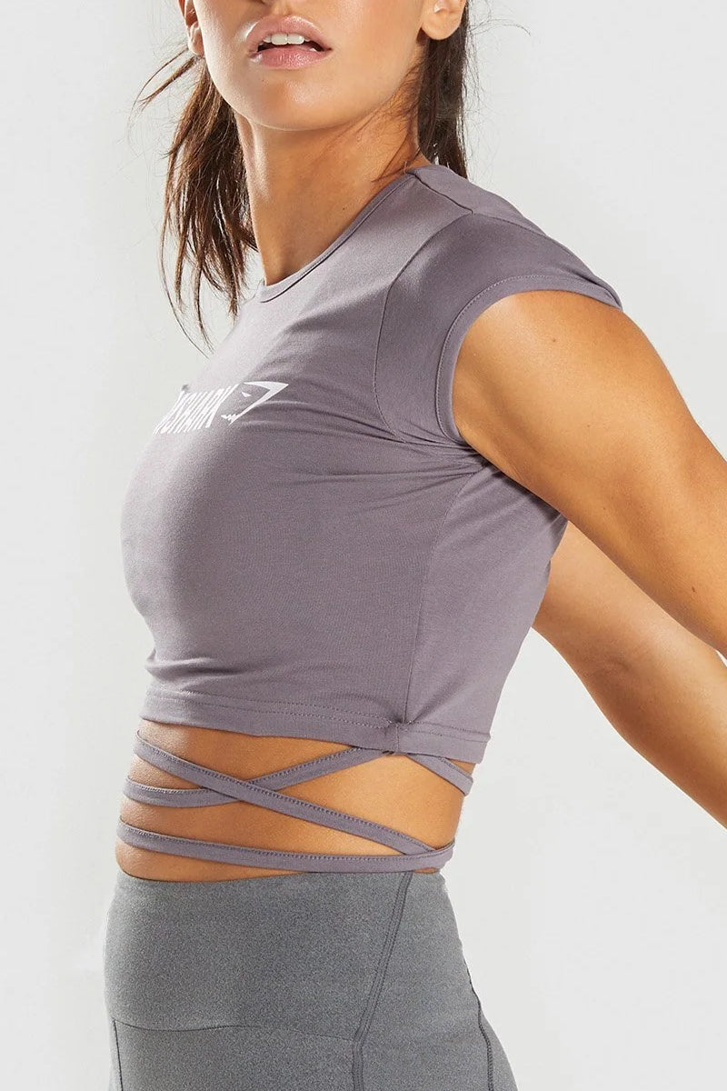 Gymshark Ribbon Capped Sleeve Crop Top Slate Lavender