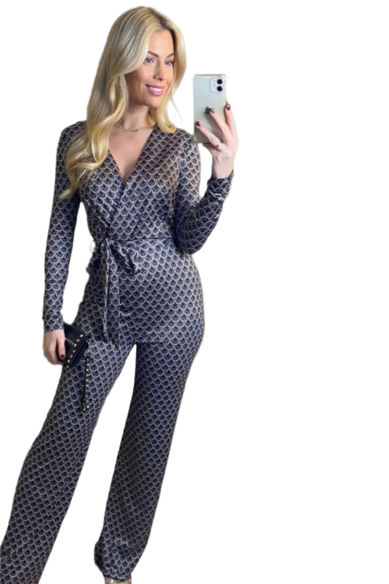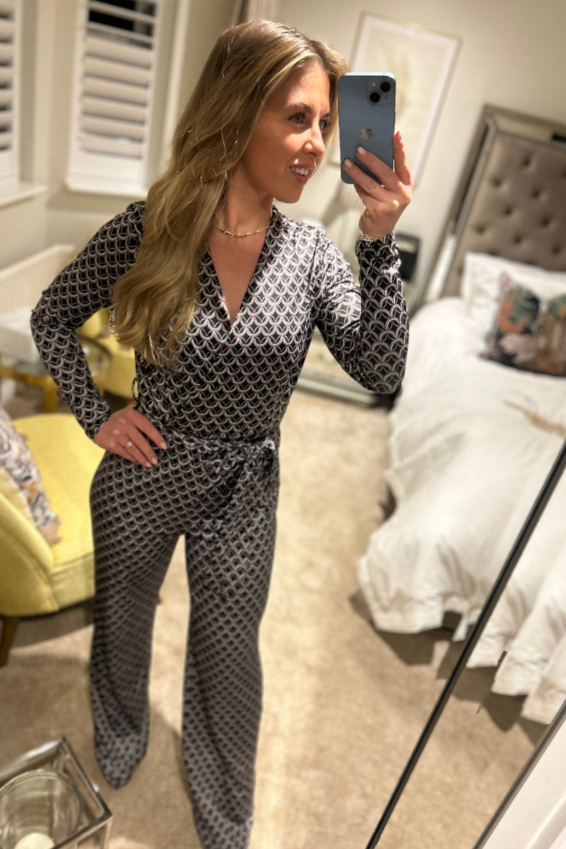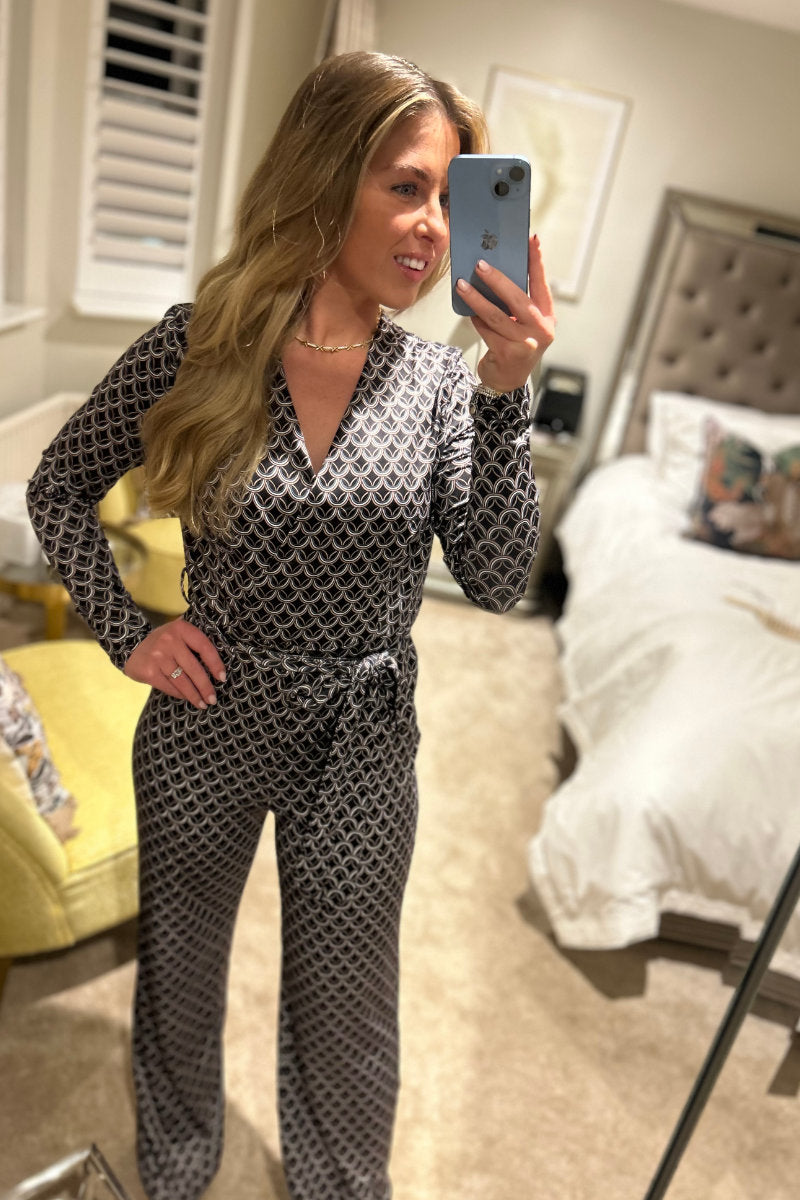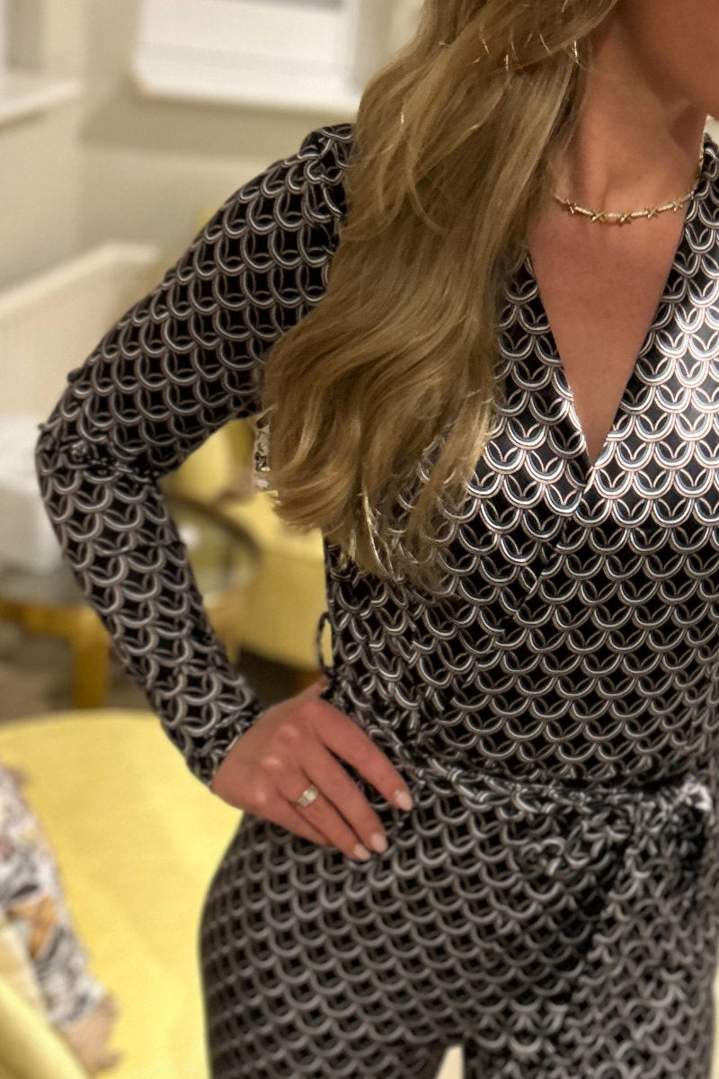 Boutique Collection Ladies Chic Black Geometric Print Wrap Jumpsuit