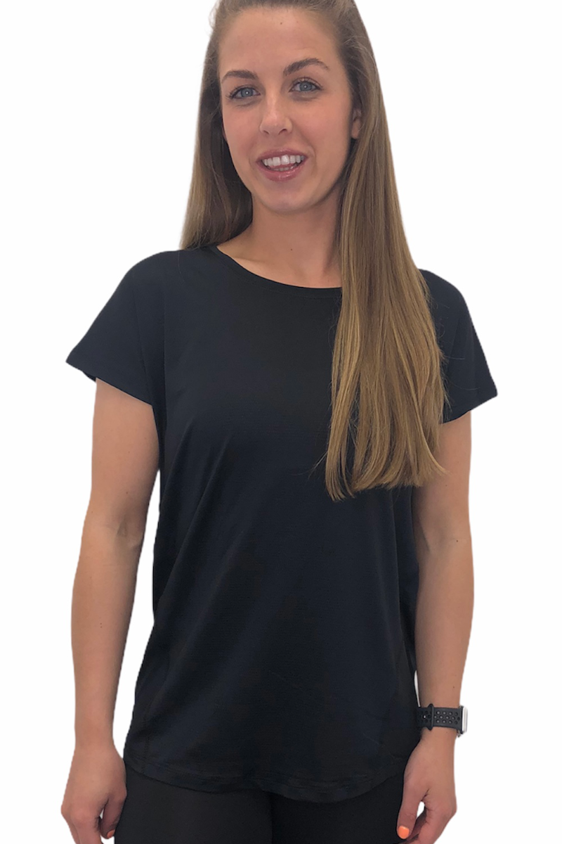 Reach your goals in style with this comfy sports top, designed with sweat-wicking fabric to help you stay cool and comfortable all the way through your workout. Styled in a relaxed shape with short sleeves. Other colours available.