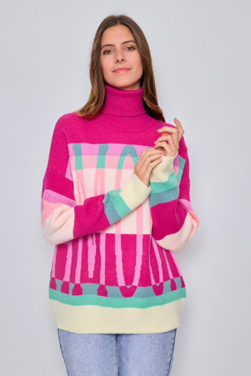 Ladies Amour Design Roll-Neck Knit Jumper Pink