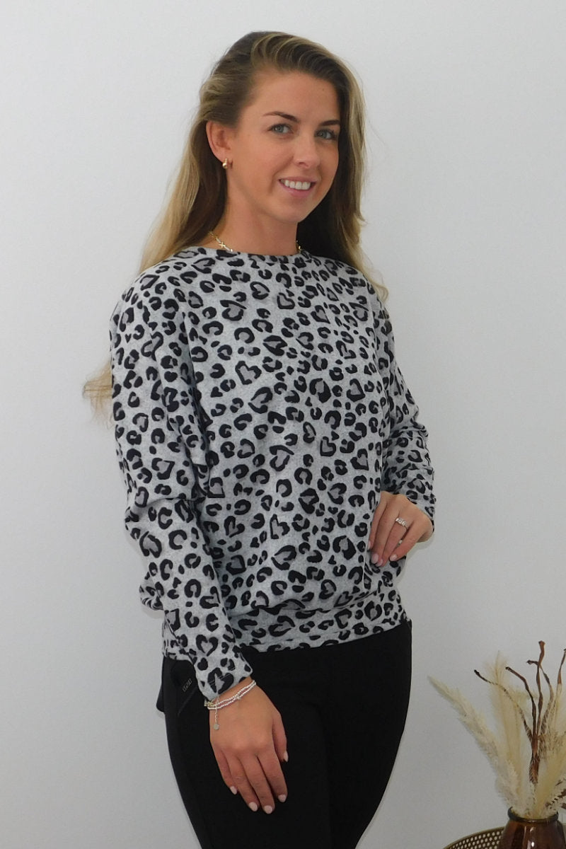 This top combines style and comfort effortlessly. The brushed fabric and relaxed fit ensure all-day wearability, while the trendy animal print adds a modern edge to your outfit. Pair it with jeans or leggings for an easy yet stylish look. We recommend sizing up for the best fit.