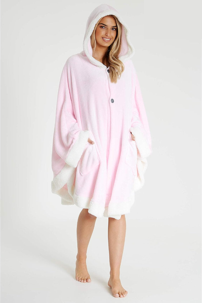 Ladies CityComfort Fleece Hoodie Poncho in Pink