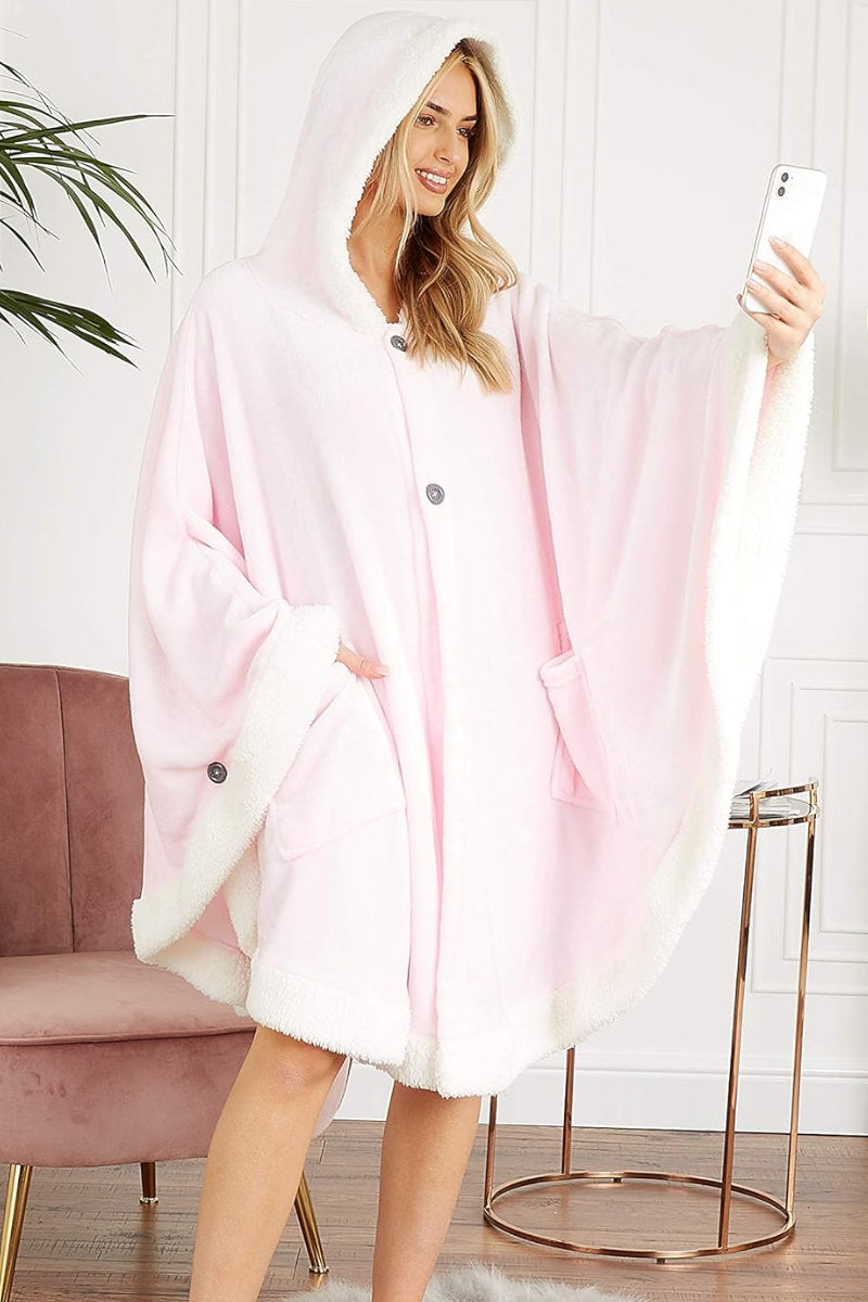 Wrap yourself in cosiness with the CityComfort Oversized Hoodie Snuggle Blanket. This luxurious wearable blanket is the ultimate winter companion, featuring a fluffy hood, two large pockets, and a sherpa lining for added warmth. Designed for comfort and practicality, its oversized fit ensures full coverage, making it perfect for lounging at home or enjoying your morning coffee on the patio. Available in soft pink, this blanket hoodie is as stylish as it is functional.