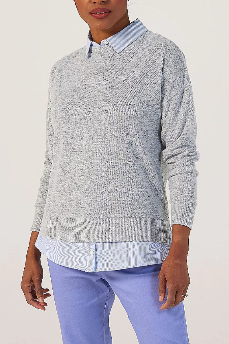 This two-in-one marvel simplifies your morning routine by delivering a perfectly layered outfit in one easy step. The soft, stretchy jumper keeps you warm and comfortable, while the crisp collar and shirt detail add smart style. Wear it with tailored trousers for work or dress it down with denim for weekend outings—either way, you’ll appreciate its versatility and effortless charm.