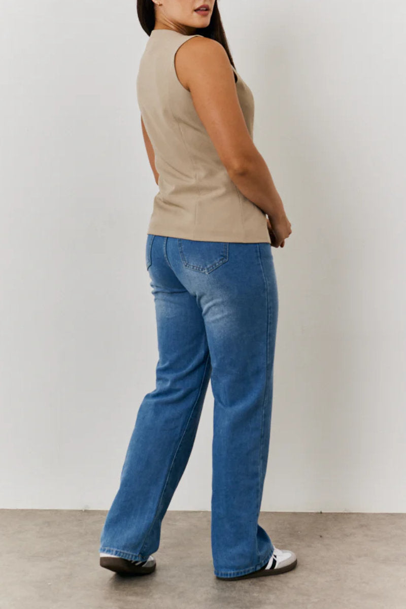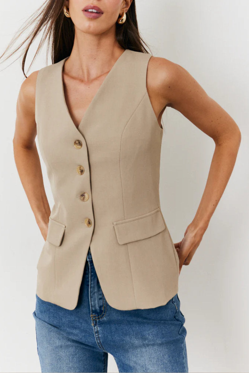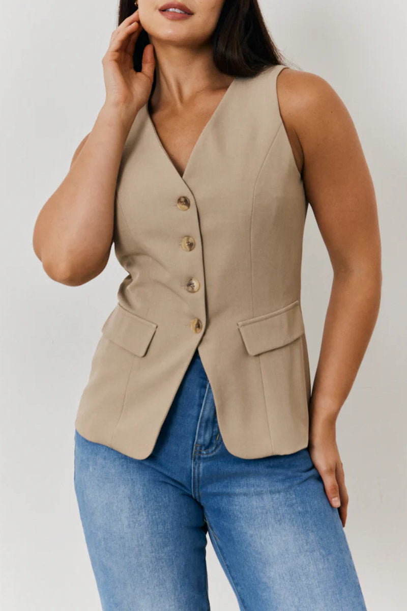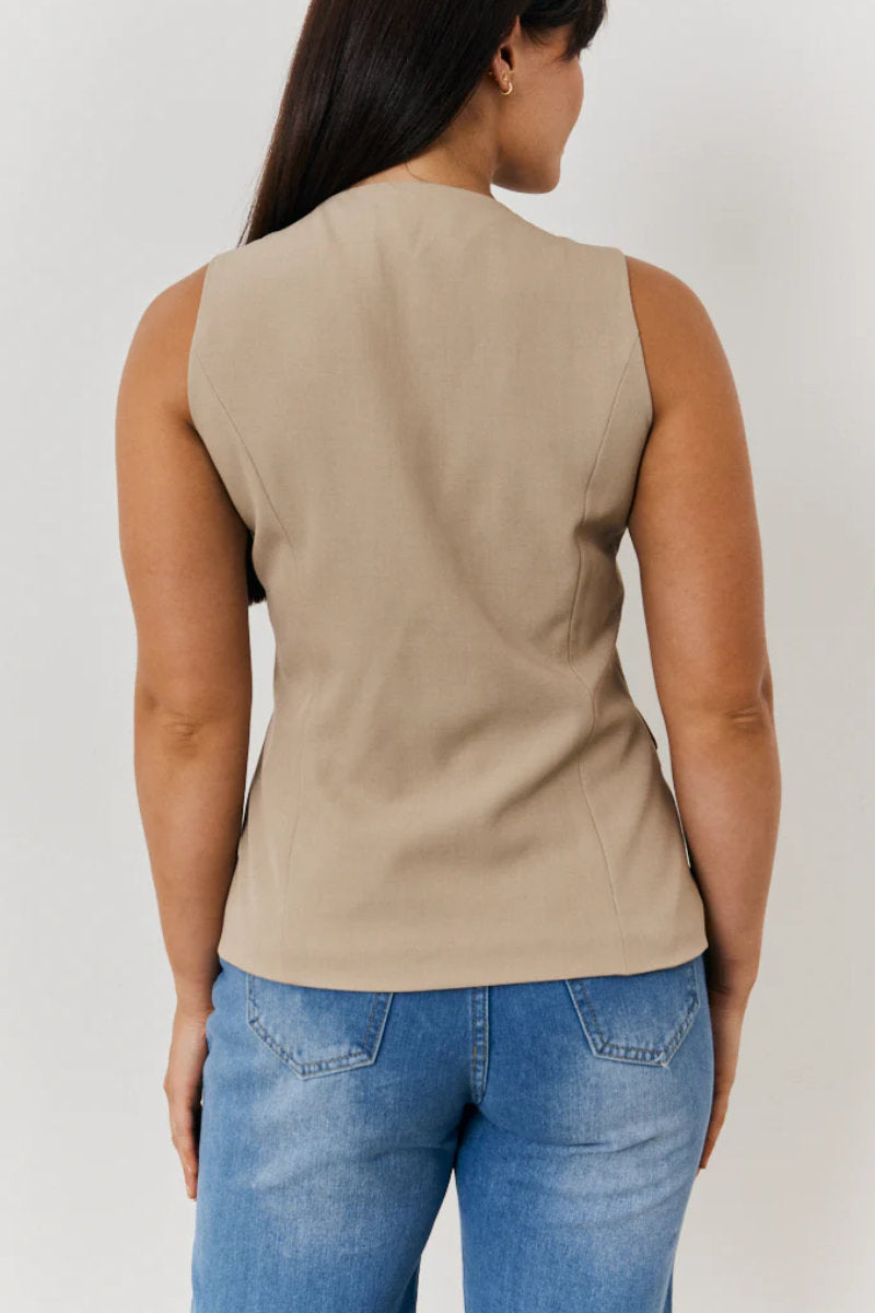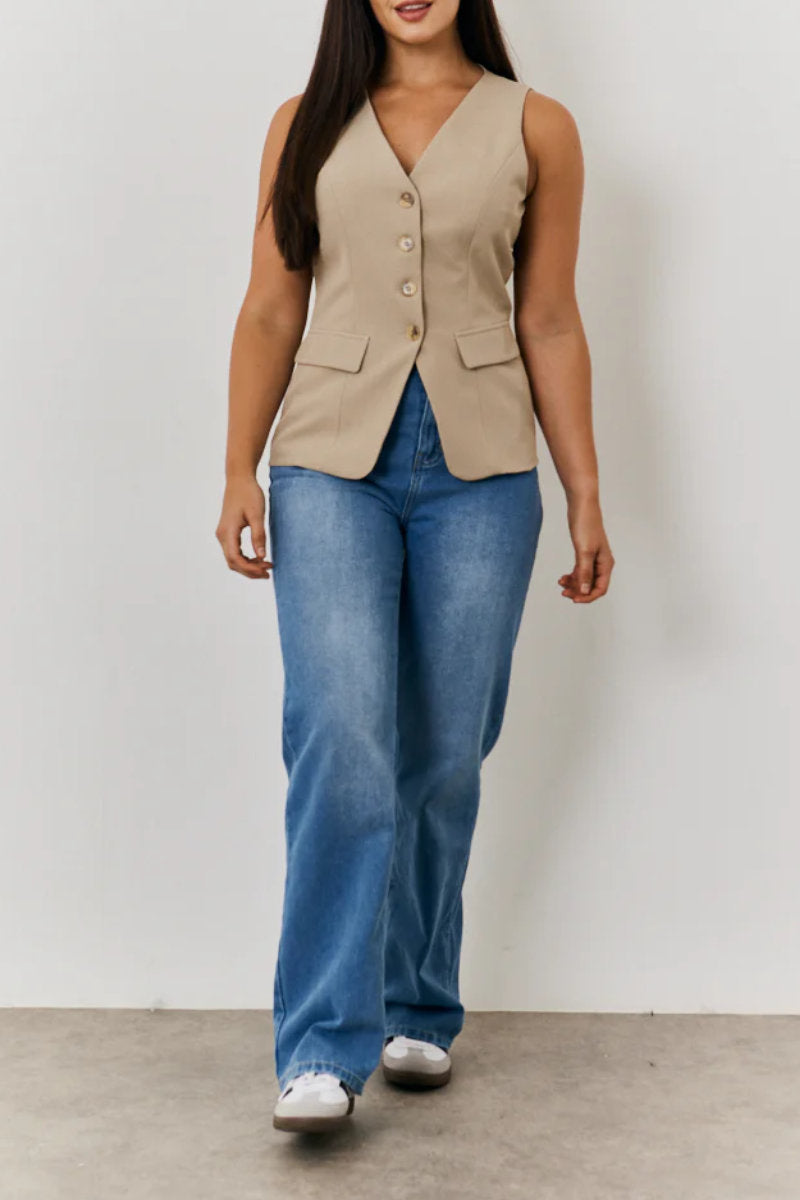 Whether layered over a maxi dress for a retro feel or teamed with jeans for everyday polish, this stone waistcoat adds instant style with minimal effort.