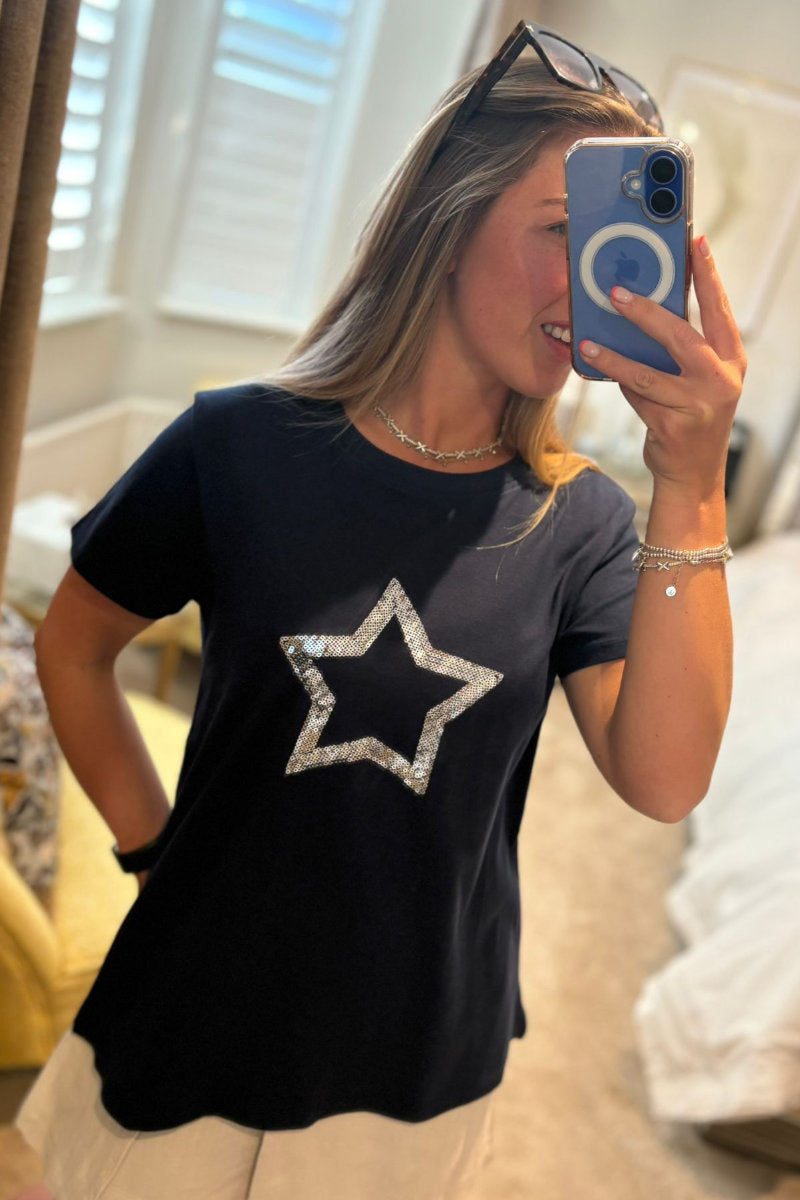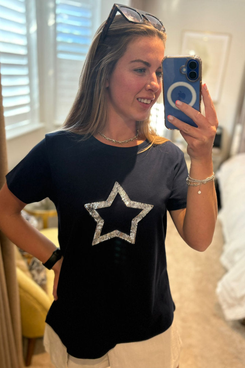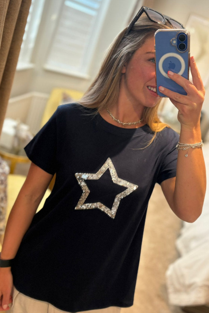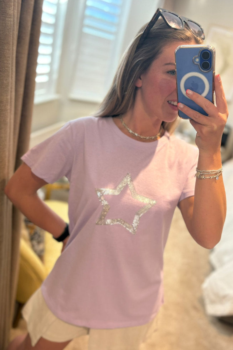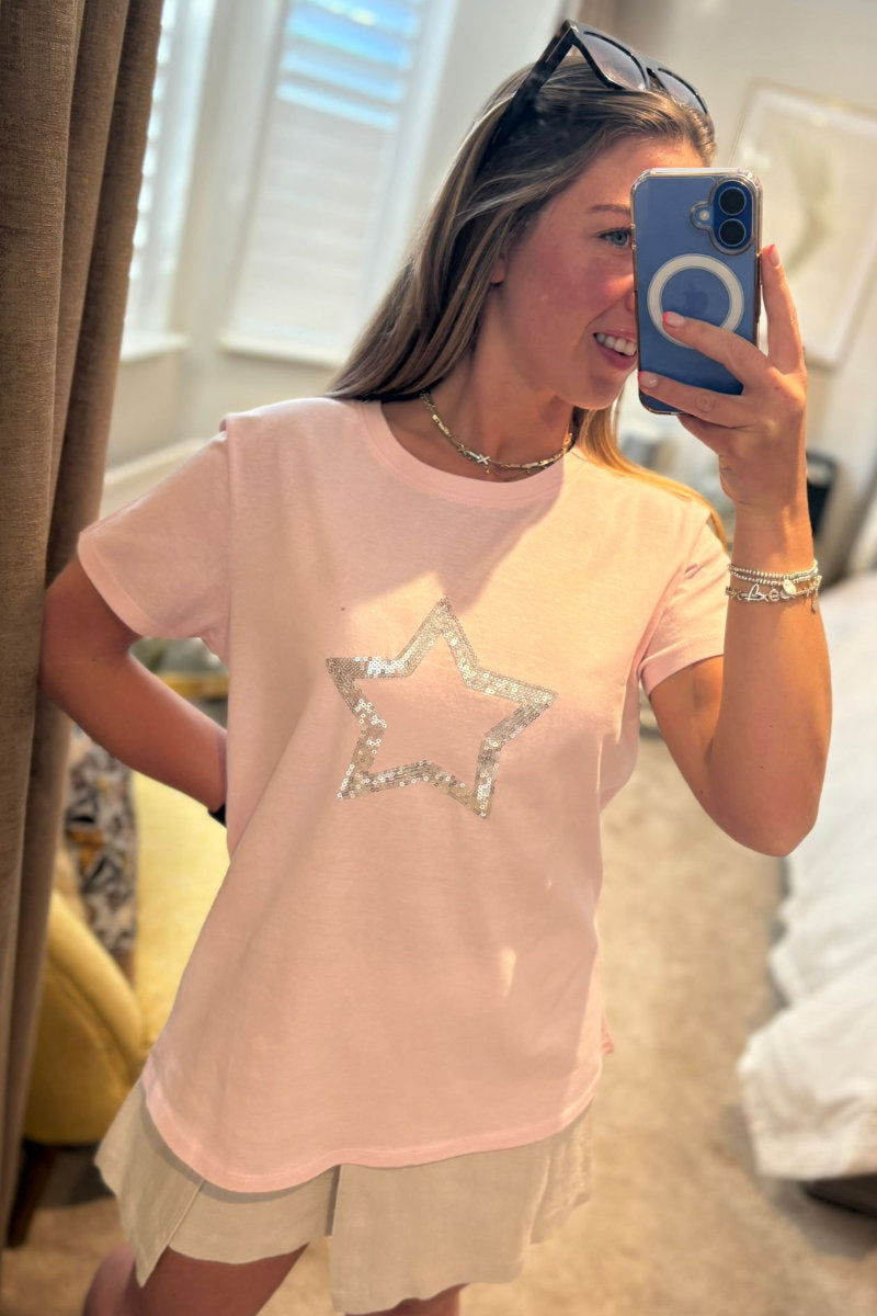 Add a little sparkle to your everyday style with the Paramour Sequin Star T-Shirt. A fresh twist on a classic silhouette, this piece is perfect for those who love relaxed comfort with a hint of shine.