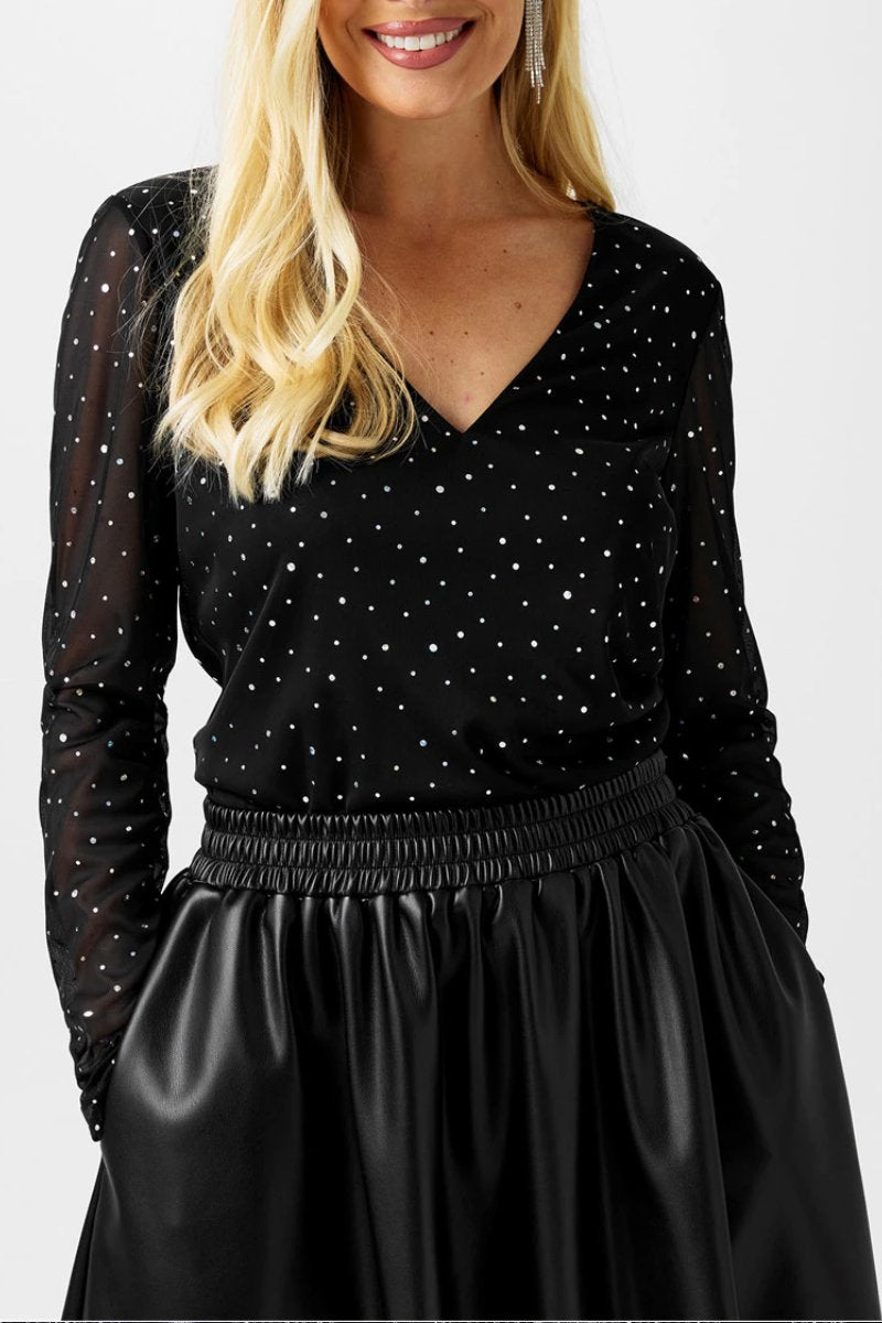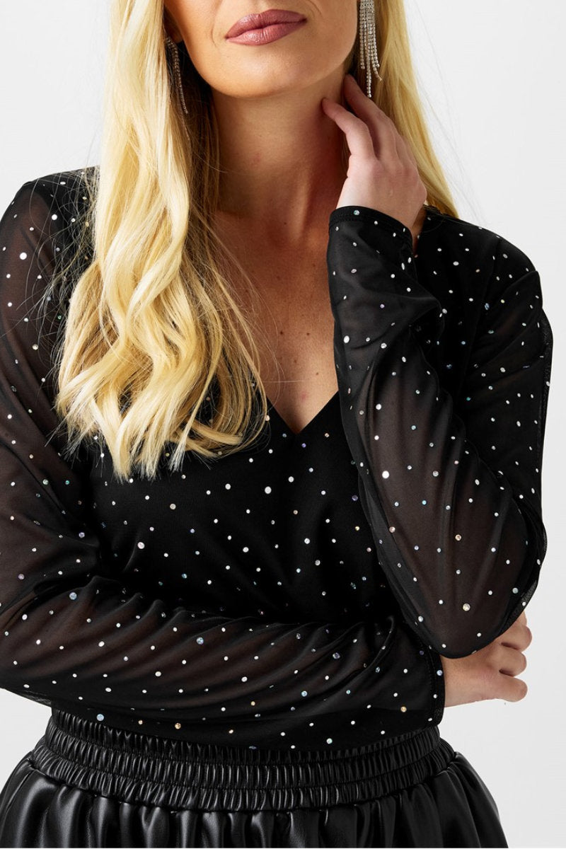 This top strikes the perfect balance between glamour and sophistication. The subtle sparkle of the sequins makes it ideal for special occasions, while its lightweight fabric ensures all-day comfort. Pair it with PU trousers and heels for a show-stopping outfit or dress it down with jeans and ankle boots for a laid-back yet stylish ensemble. It's the ultimate statement piece for your wardrobe.