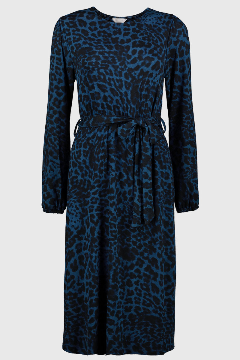 Ex-Tu Petite Teal Leopard Print Tie Belt Dress