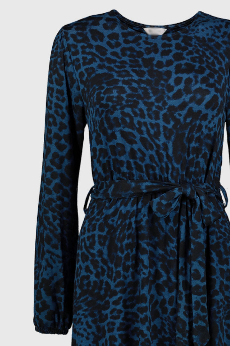 Elevate your autumn wardrobe with the Ex-Tu Petite Teal Leopard Print Tie Belt Dress. Featuring a striking teal backdrop with an all-over leopard print, this dress combines a touch of wild style with effortless sophistication. The tie belt cinches at the waist, creating a flattering silhouette, while the round neckline and long sleeves make it ideal for cooler days.